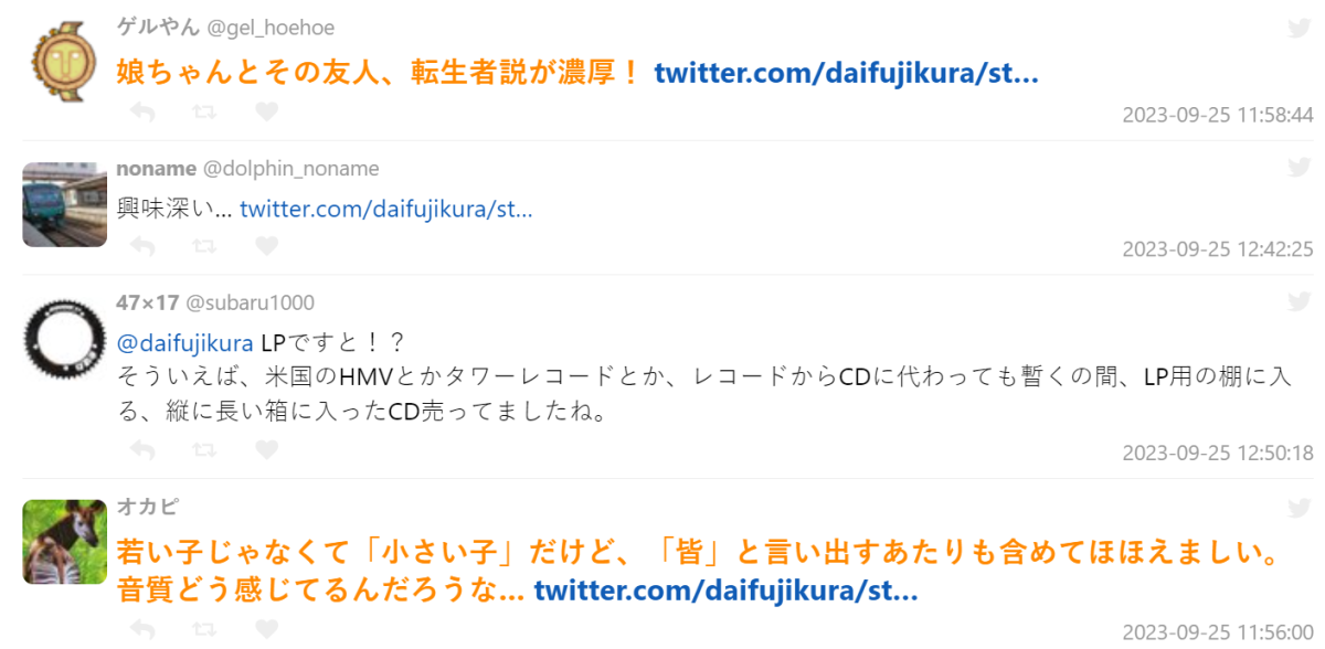 不過在日本 X 上有個引起話題的事情,作曲家藤倉大 ( @daifujikura ) 談到自己的 12 歲的女兒,居然開始收藏起「黑膠唱片」,原先想說只是女兒的個人愛好,沒想到一問之下,居然不少同學也都在買,甚至到唱片行尋找喜歡的收藏。也引起網友討論,這是現在小學生或中學生的偏好嗎 ?