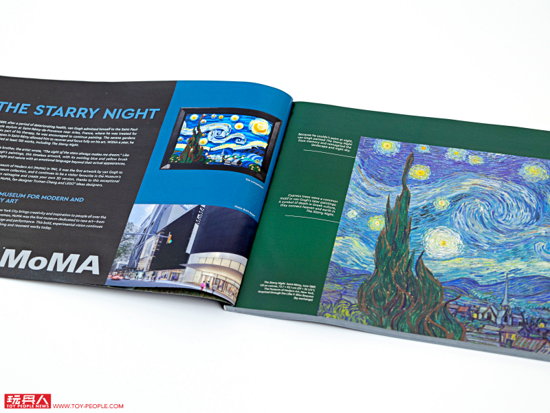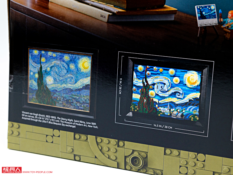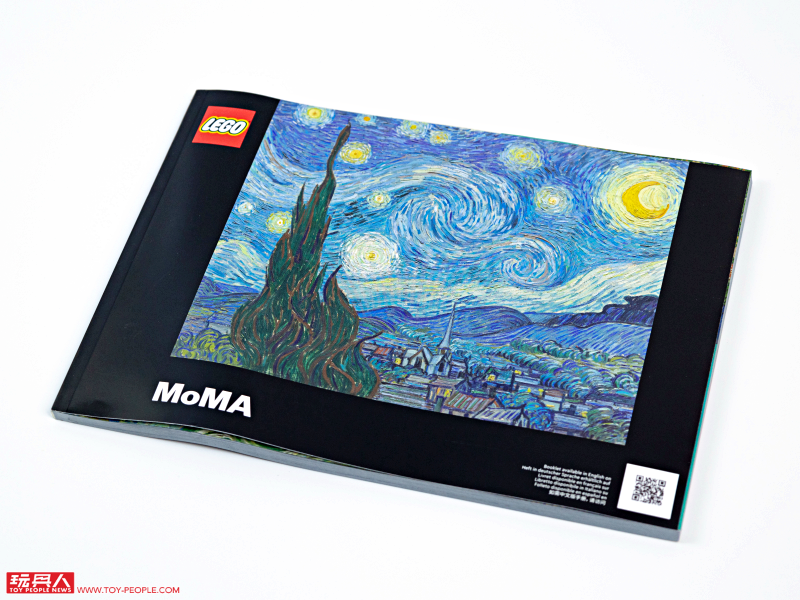 ▼ 包裝盒正面即是樂高版本《星夜》的正面圖樣,黑底、橄欖綠樂高零件紋理的搭配極具質感,右下角還有紐約現代藝術博物館 The Museum of Modern Art(MoMA)的 LOGO(現代藝術博物館是在 1941 年時將《星夜》納入館藏。)。