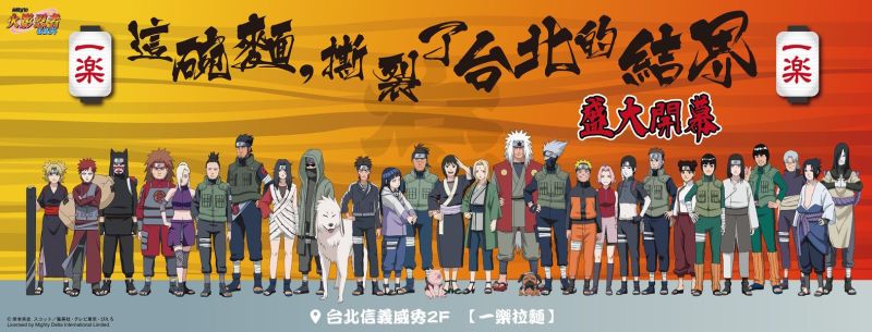 在風靡全球的日本動漫《火影忍者》中,主角鳴人最愛的「一樂拉麵店」也要正式登台啦!繼日本淡路島的二次元之森的「一樂拉麵店」實體店鋪以及上海店後,這次終於正式登陸台灣,耗資千萬打造的信義區威秀火影忍者一樂拉麵旗艦店,將於 8 月 10 日展開試營運!