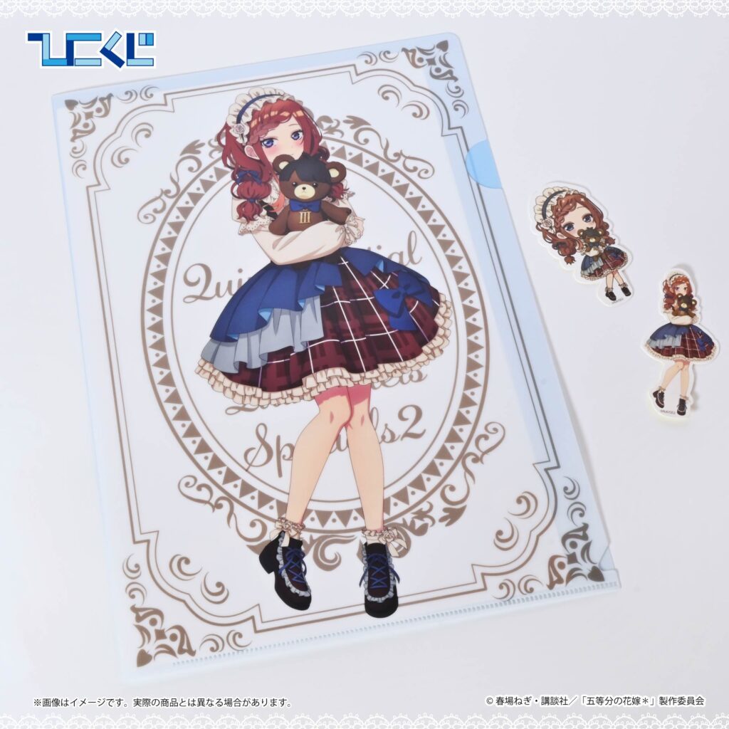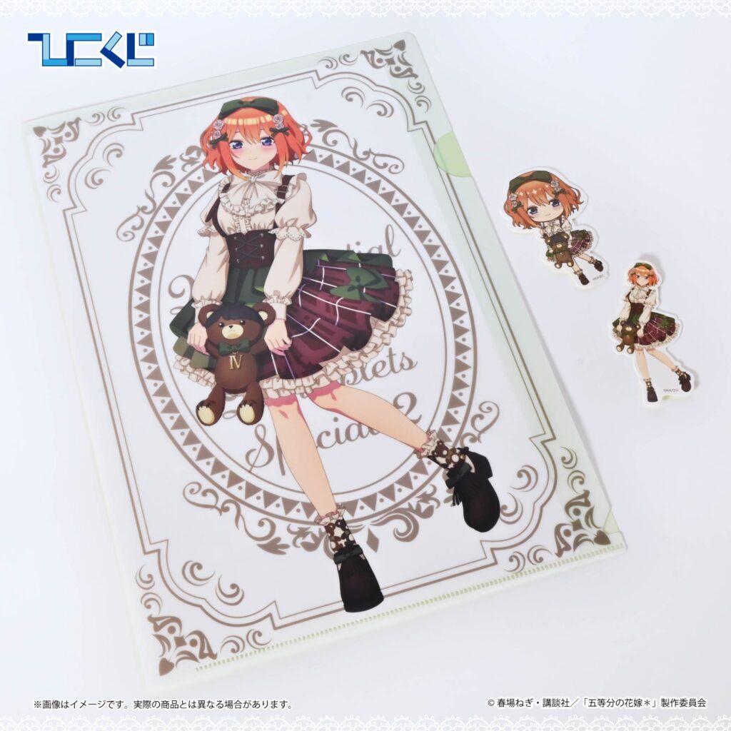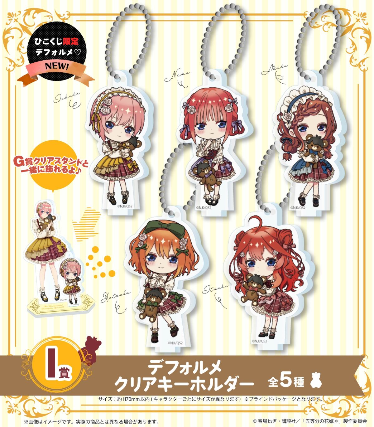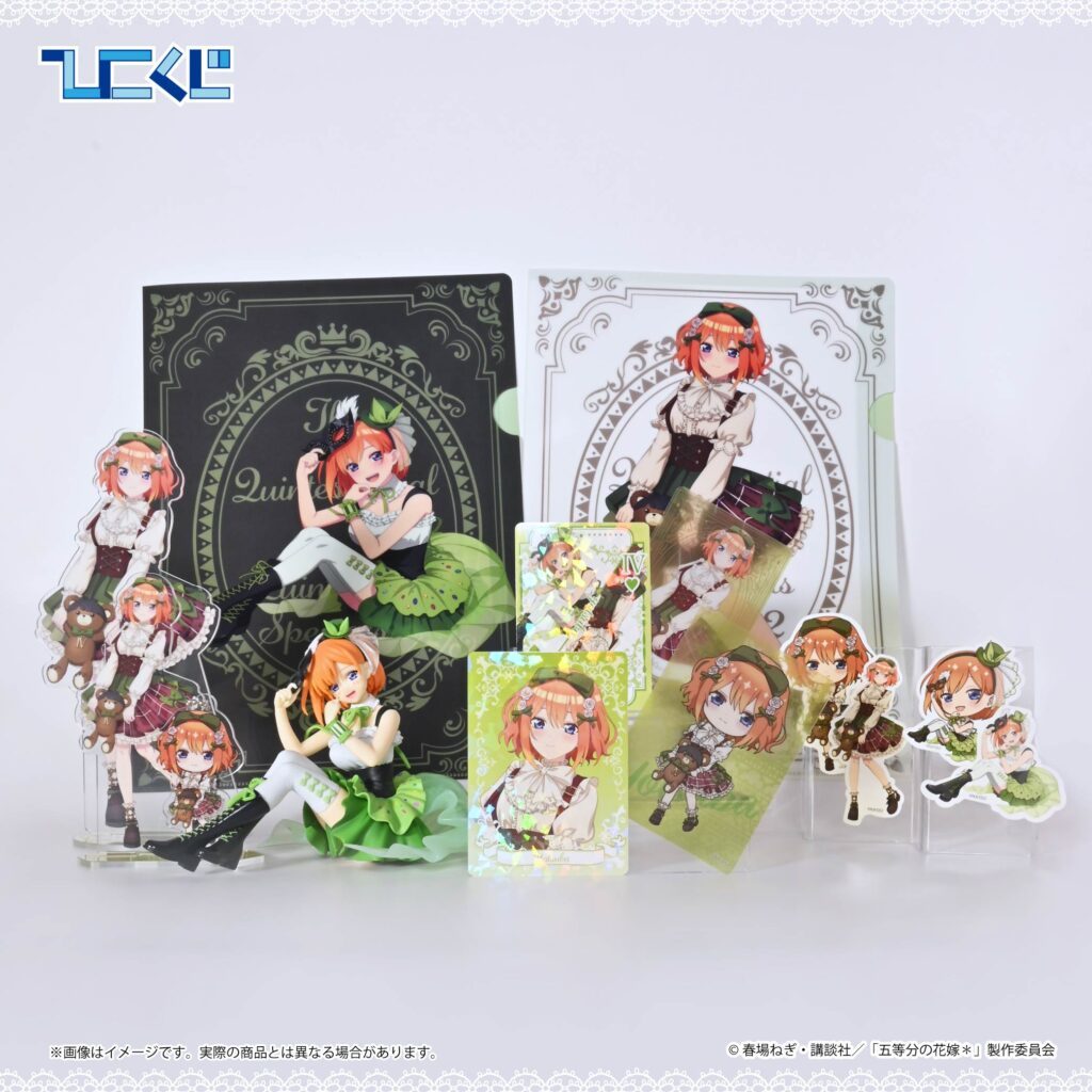 「HIKO賞 五等分的新娘*~你喜歡哪一個我?~」,採用原創插圖「Masquerade Party」主題,將其製成A~E賞的五胞胎角色模型!其餘獎品則是「經典蘿莉塔」風格,同樣也是使用新繪製原創插畫,推出夢幻的壓克力立牌、透明文件夾和貼紙、Q版吊飾、卡片套組以及最後賞的A3透明插畫板...等豐富獎品!