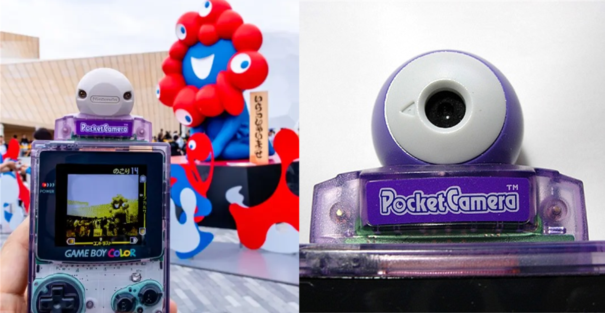 Game Boy專用「口袋相機」是 1998 年推出的附屬商品,其實是跟遊戲卡帶一樣要插入機體中使用,影像是單色的,解析度較低,相機本體部分向上突出,可以向前旋轉 180 度自拍,它還具有自拍和拍攝偽全景照片的功能。那個年代,連手機都還沒有相機功能,更別說出門隨手拍照這件事了。
