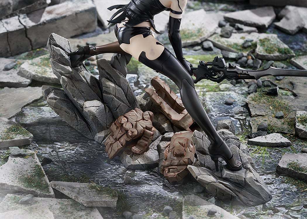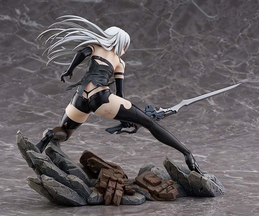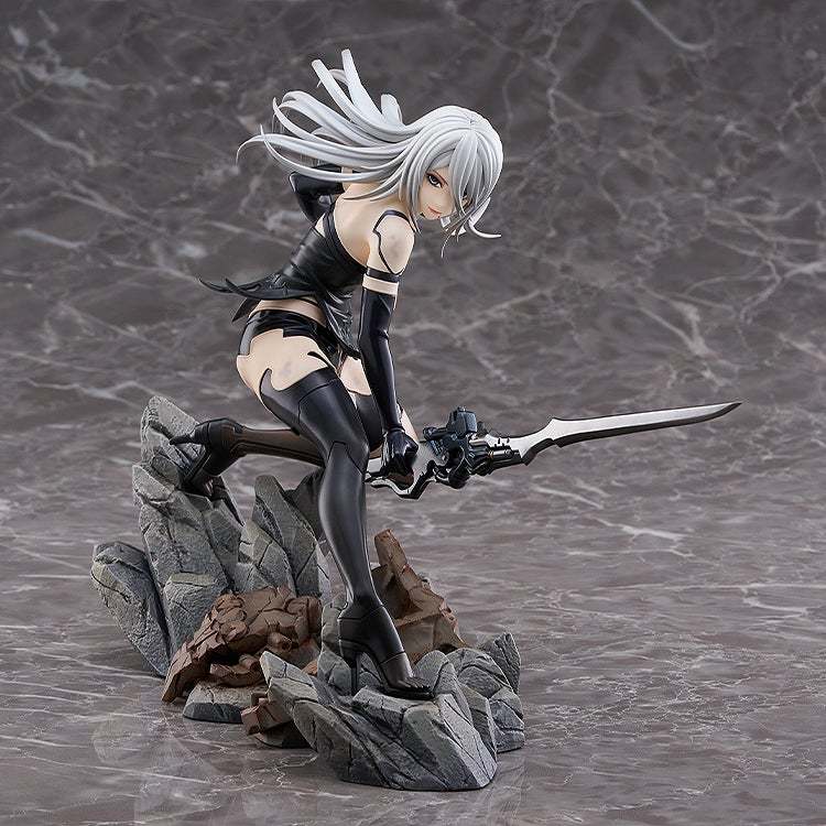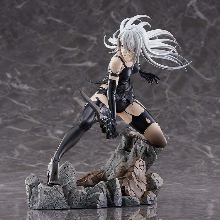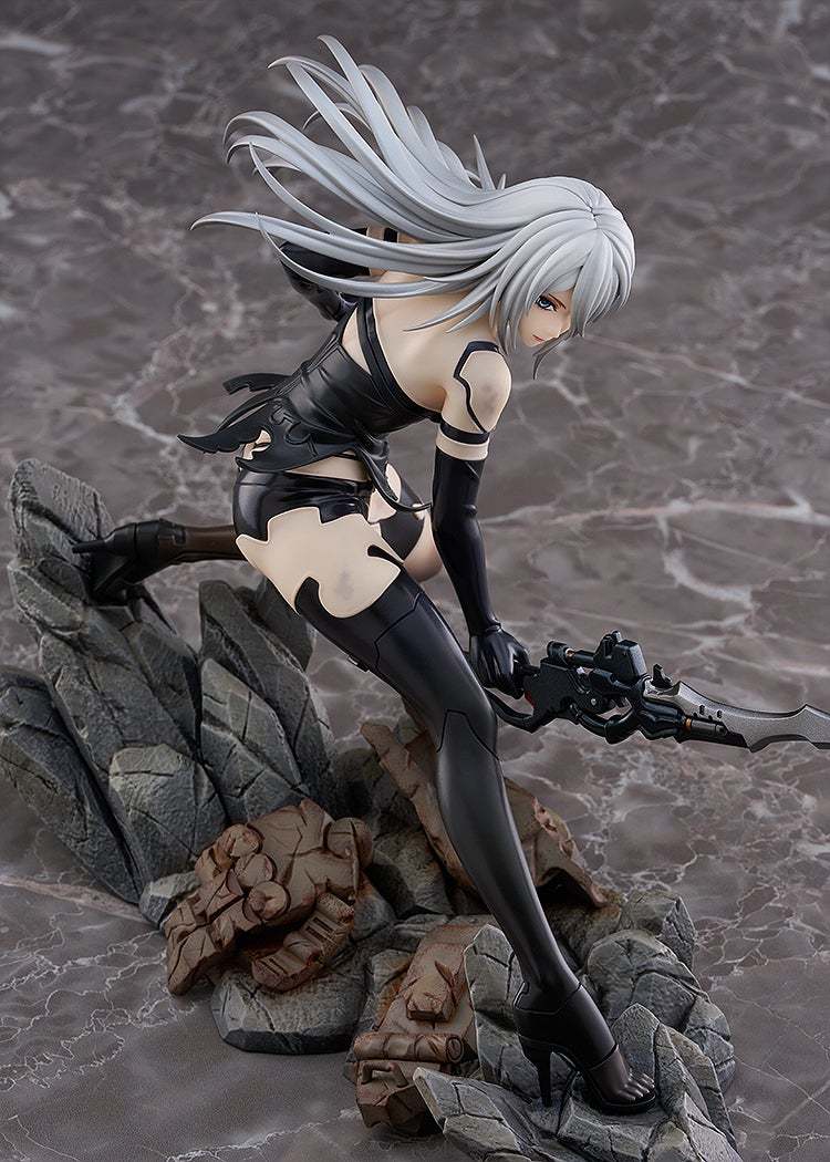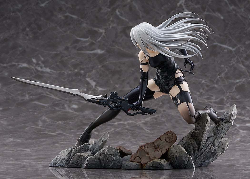 本次的A2 1/7比例塗裝完成品高約20公分,製作了A2手持四〇式戰術刀戰鬥的模樣,雕刻還原修長的大腿、纖細的身體曲線與切分的機械紋路。手中的四〇式戰術刀的造型被細緻重現,塗裝再現銳利的眼神與嘴角的痣,飄逸的銀白色長髮與向前裂開的碎石地台為整體增加了強烈的動態感,完美展現她與機械生命體激烈戰鬥的躍動姿態!