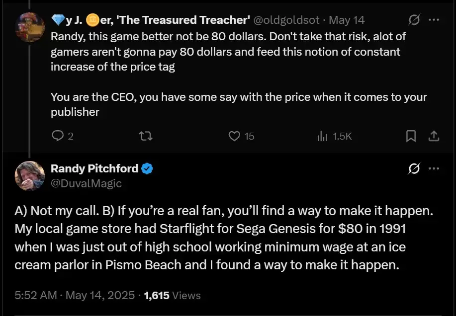 值得注意的是,這並非 Randy Pitchford 首次陷入爭議,他過去就曾在 X 上強硬回應粉絲對《邊緣禁地4》的質疑,早已讓部分玩家對其領導風格產生反感。如今再度因定價發言惹議,更讓外界擔憂本作上市後將面臨銷量與口碑雙重壓力。