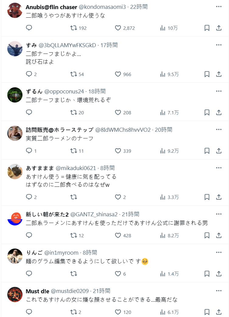不少網友也對此感到趣味,沒想到一個健康應用程式居然會因為二郎拉麵中計,還在公告表示「抱歉讓大家的期待落空」,真的是太鬧了www。你各位不能再吃二郎來假裝自己很健康了,「あすけん」不替各位背書了。