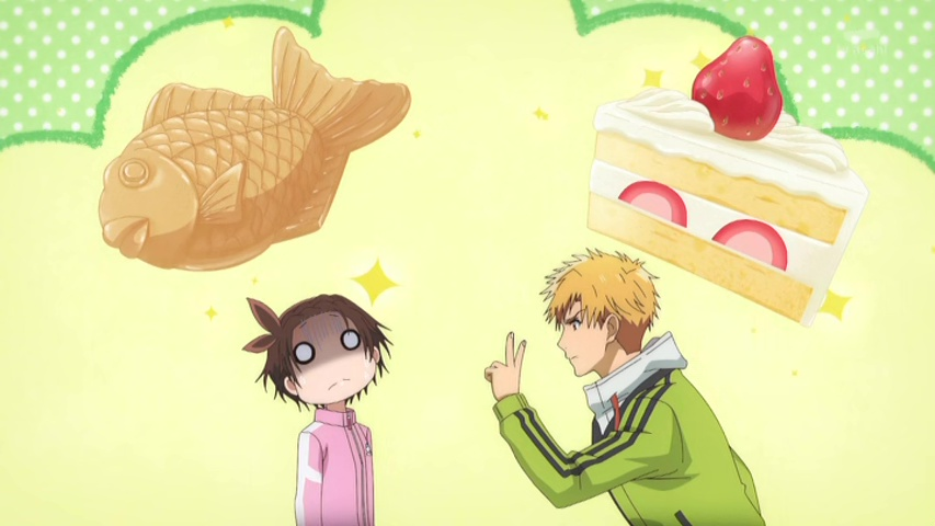 ▼ 草莓蛋糕&鯛魚燒作戰是指《金牌得主》老師明浦路司對學生結束祈的教導技巧,希望吸引她努力練習。