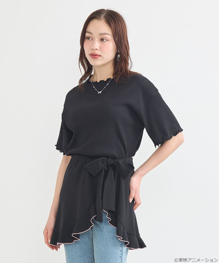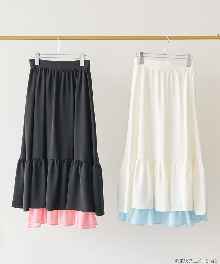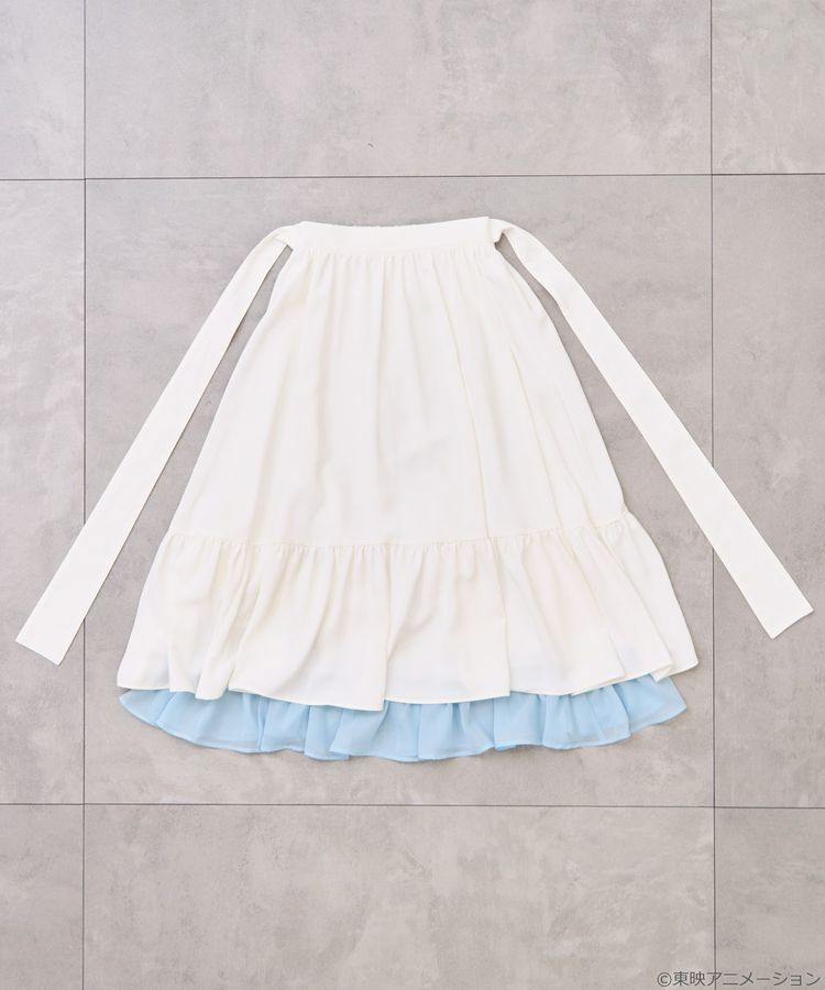 這款裙子有附可拆式吊帶,不只可能當襯裙,還能變化成小背心!整體設計像是角色變身一樣的變化系穿搭。腰間用蝴蝶結綁帶可調整尺寸,粉紅與淡藍的荷葉邊設計呼應兩位主角的變身服,穿法靈活超百搭。