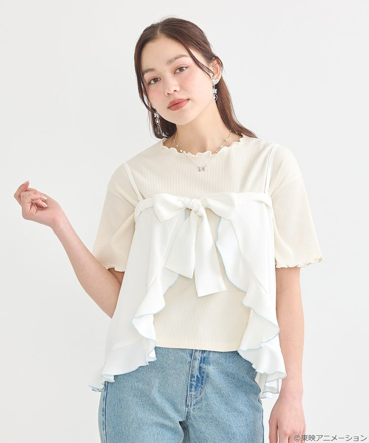 以美墨莎莎/黑天使和雪城乃香/雪天使的配色為設計主軸,特色在於領口用蕾絲花邊編織出可愛的波浪感,分別搭配粉嫩的粉紅與淡藍色調。袖子上還有雙排愛心鏤空花紋,整體是略短版剪裁,搭配褲子或裙子都很百搭。