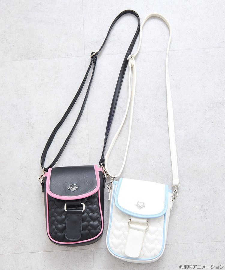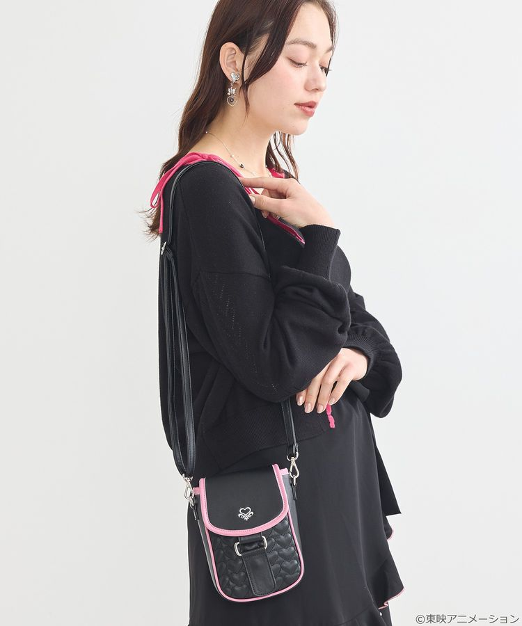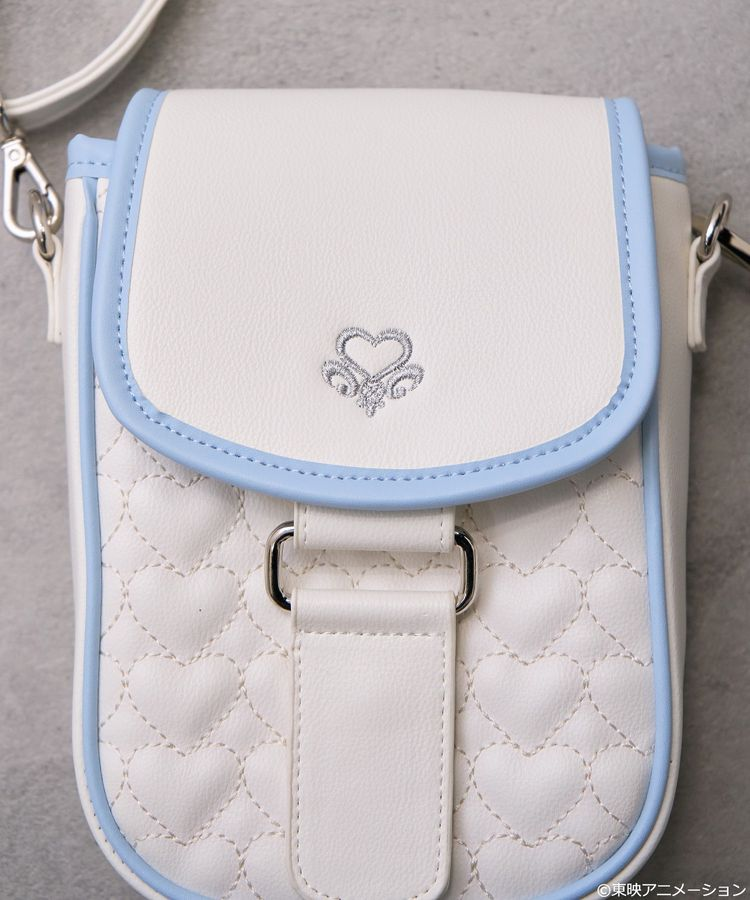 以變身道具「Card Communes」為靈感設計的可愛斜背包,採用角色服裝色系點綴滾邊,還有銀線繡上徽章、心型絎縫等細節,內外都有收納空間,實用又有型,背帶也可調整長度。