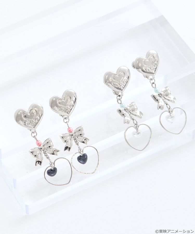 兩款分別對應有耳洞和沒耳洞的朋友,都是用銀色愛心吊飾搭配角色的徽章,還有原創蝴蝶結吊飾點綴,配著珍珠與愛心形珠子(粉紅/藍/黑/白),不管平常戴或特別打扮都很適合!