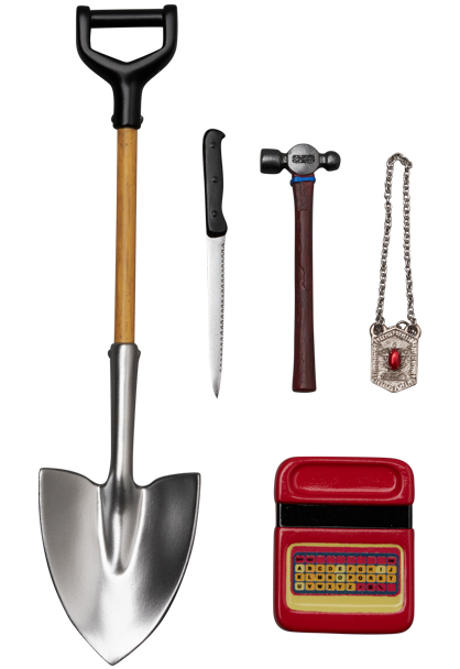 本作高約 13 公分,充分再現了《鬼娃新娘》中恰吉被蒂芬妮隨意縫補的粗糙身體,佈滿傷疤的頭部、深刻的割裂傷痕、破洞的頭皮與亂髮可說是相當生動,買回家看到會真心害怕的那種。服裝的吊帶褲部分也採用布料縫製並重現了破損處理,超讚的是還有三顆頭雕可以替換,每一個頭雕也都具備可動眼設計,讓你重現恰吉豐富的詭異神態!配件包含鐵鍬、鐵錘、小刀、遊戲機,以及電影中重回人身的必要道具:護身符「登巴拉之心」(ダンバラの心臓)。
