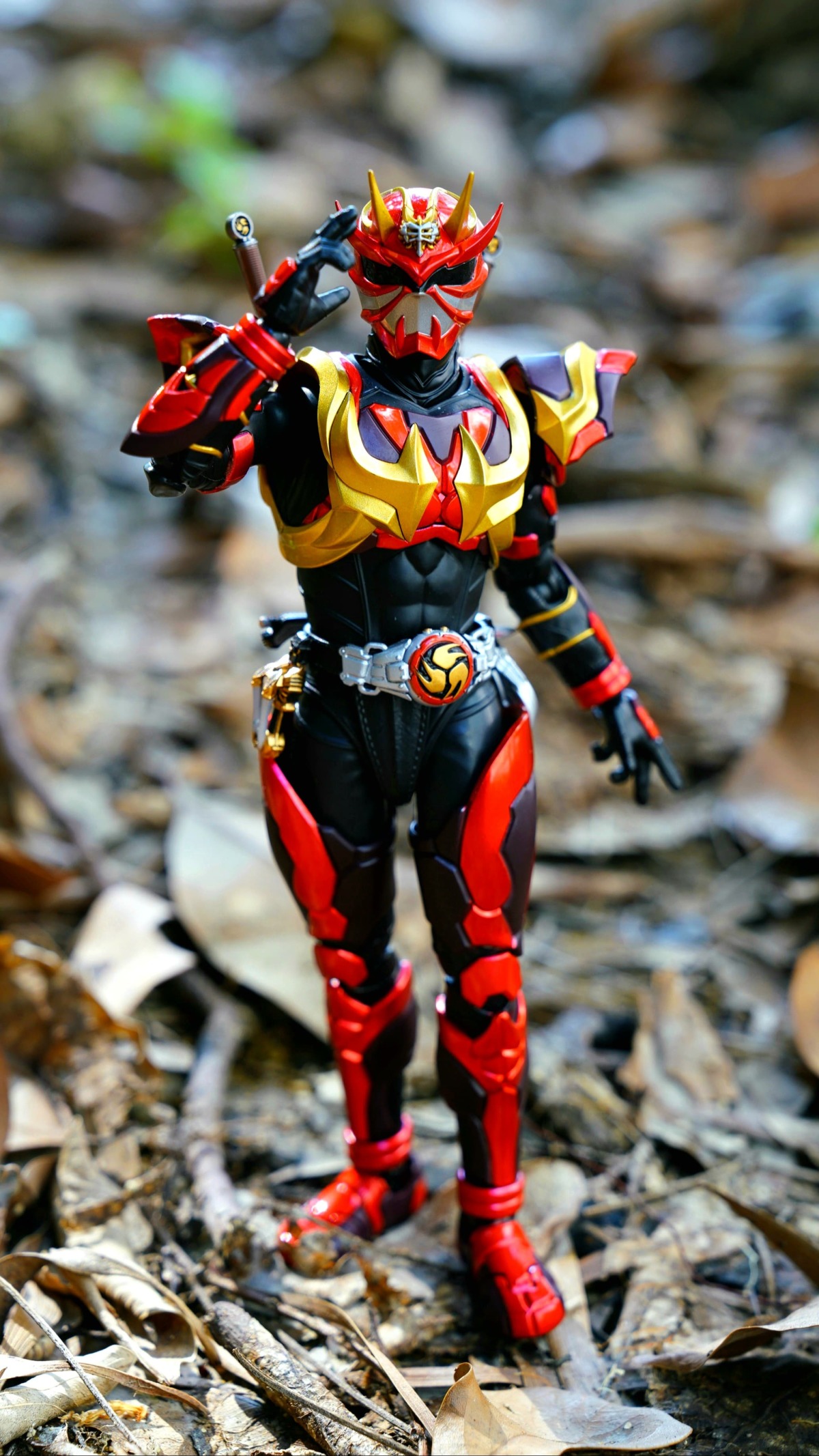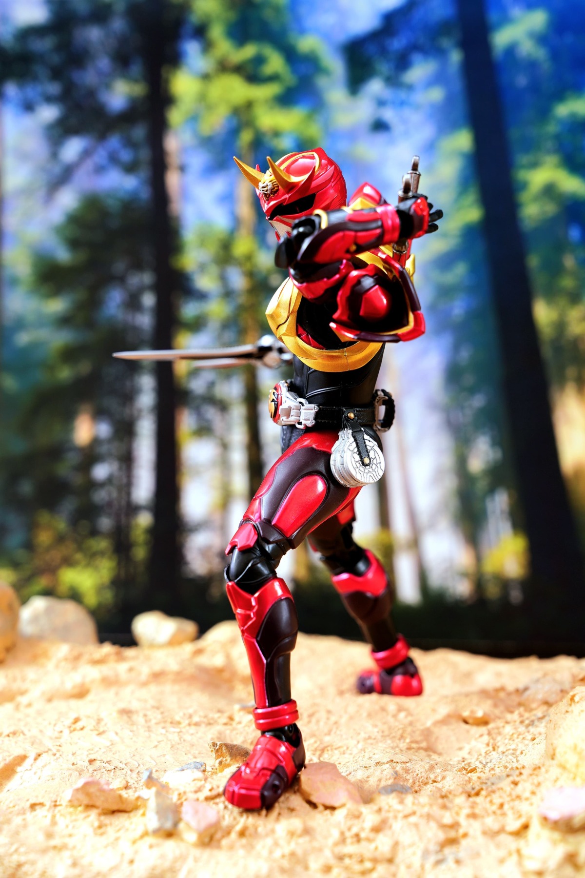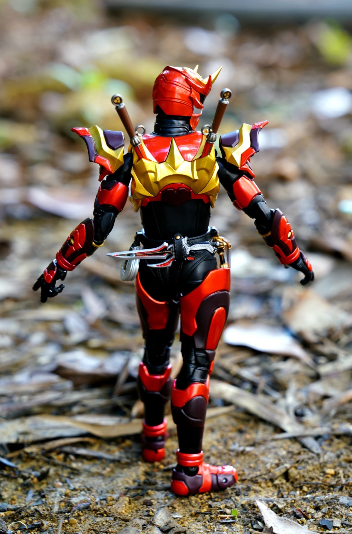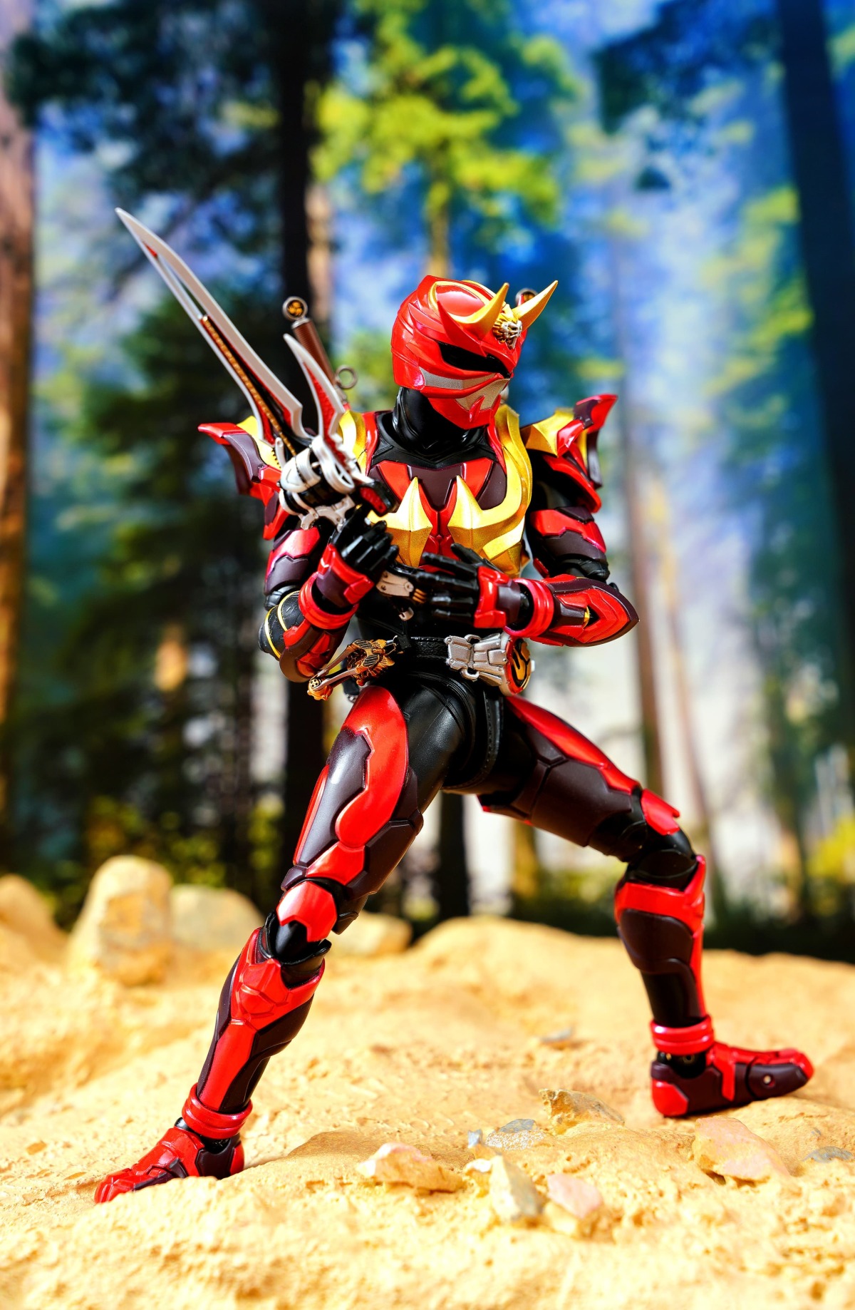 「裝甲響鬼」全身以紅、黑、金色為主。全高:約145mm,是使用音撃増幅劍·裝甲聲刃變身的形態,本次的可動人偶透過從骨骼開始雕塑,一點一點由肌肉再向外雕塑至服裝的真骨彫技法打造出這個響鬼最終形態。
