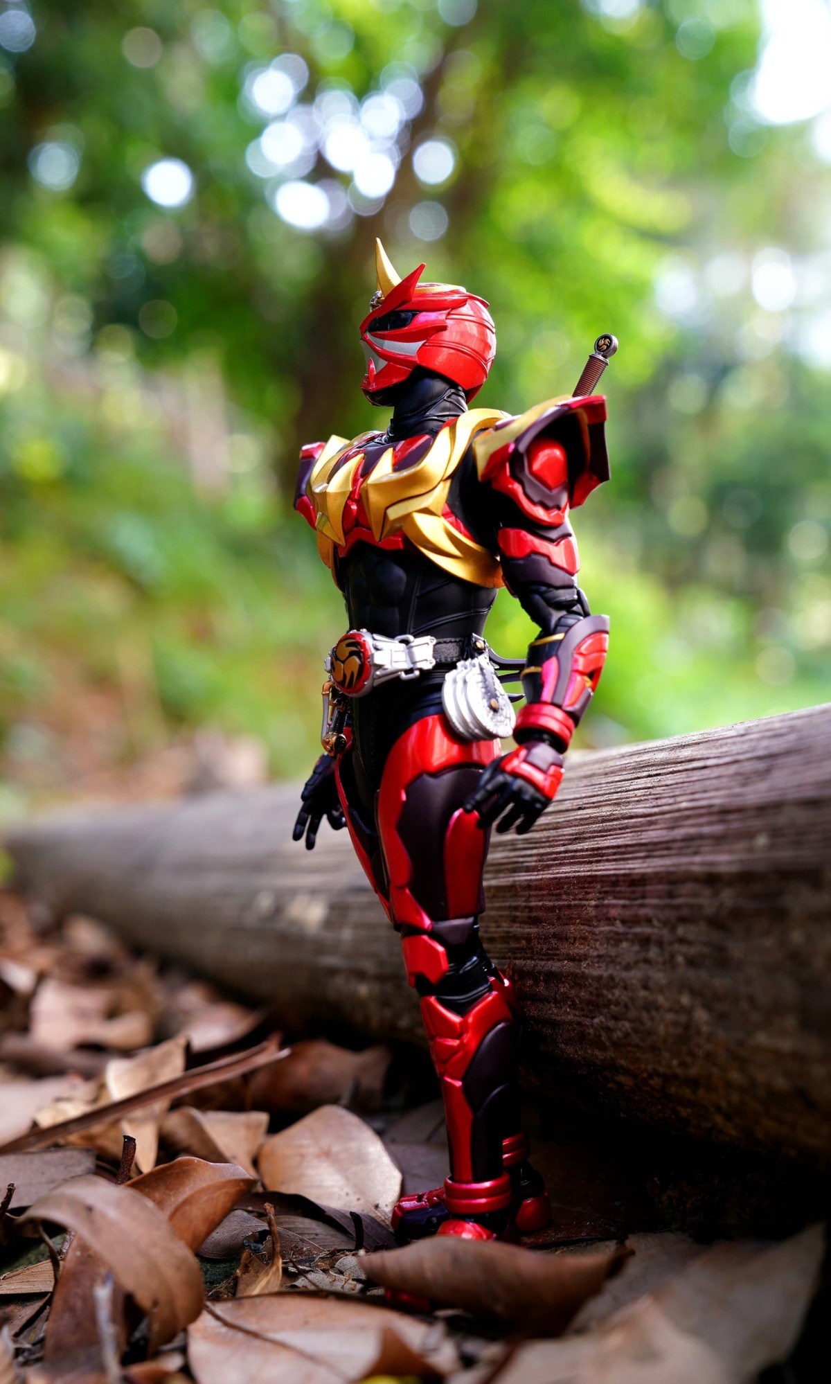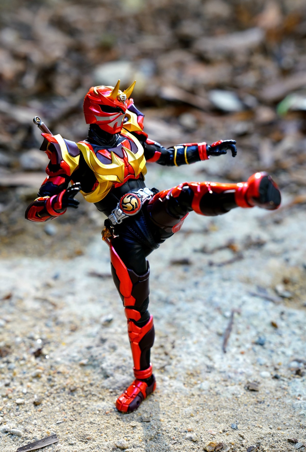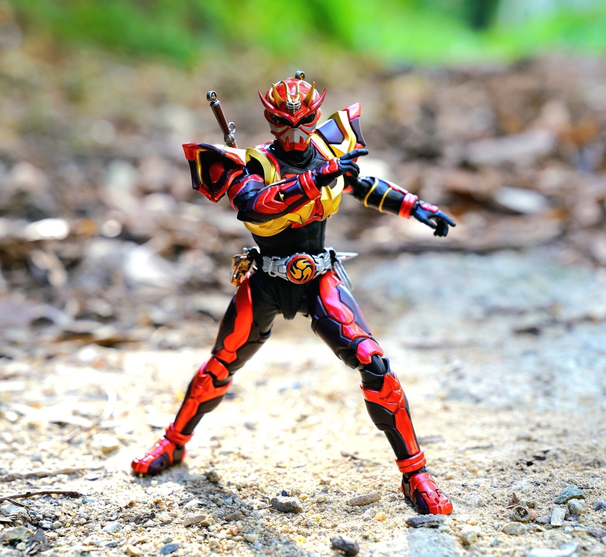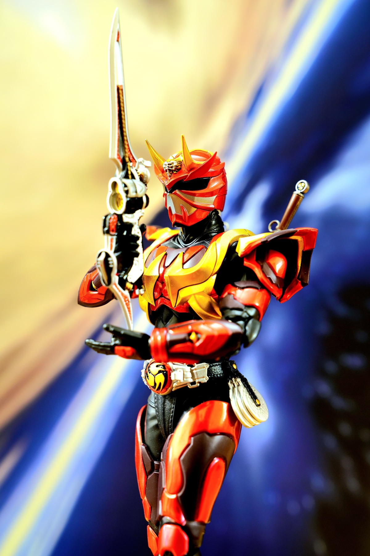 「裝甲響鬼」全身以紅、黑、金色為主。全高:約145mm,是使用音撃増幅劍·裝甲聲刃變身的形態,本次的可動人偶透過從骨骼開始雕塑,一點一點由肌肉再向外雕塑至服裝的真骨彫技法打造出這個響鬼最終形態。