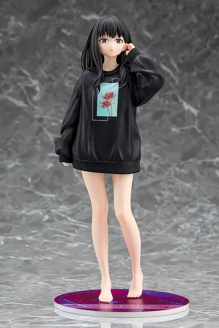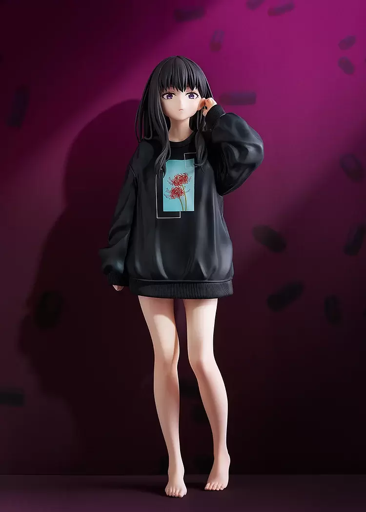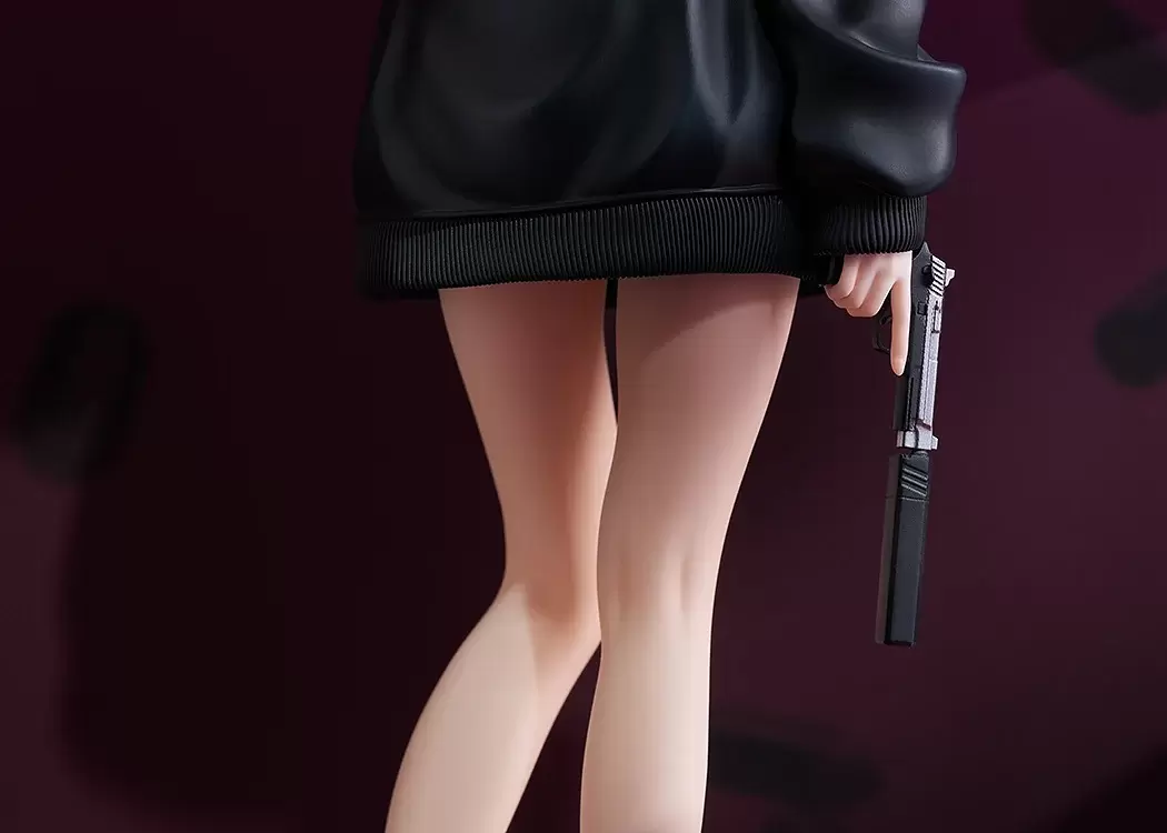 Phat!「井之上瀧奈 Oversize運動衫Ver.」1/7比例模型,尺寸約高 25 公分,以動畫第 2 集的過場插畫為基礎,將身穿黑色寬鬆Oversize運動衫的瀧奈立體化,仔細再現衣服上印製的彼岸花圖樣,黑直髮與黑上衣搭配下半身失蹤的穿搭,更強調了白皙的雙腿。下巴微抬、把頭髮往耳後勾的動作,冷酷的視線充滿殺氣~另外,附有「槍」零件,可以搭配不同情境使用,營造反差感!