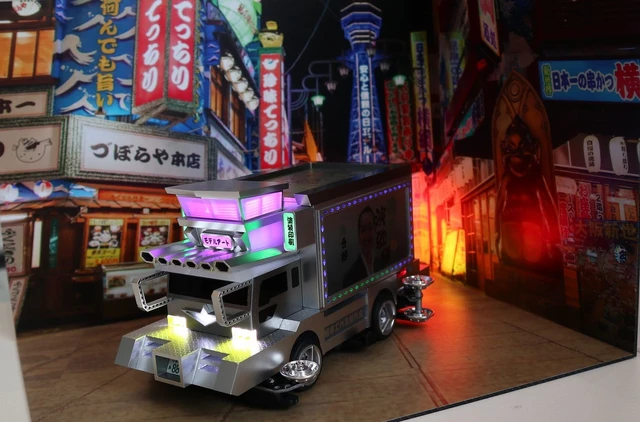 還有一家初次參賽的模型藝術公司「Model Art」,直接打造了一台小型爆改卡車版迷你四驅車,不只車身用切削加工自製,還加裝會發光的霓虹燈!甚至連輪胎都是他們公司特製的,認真程度爆表。