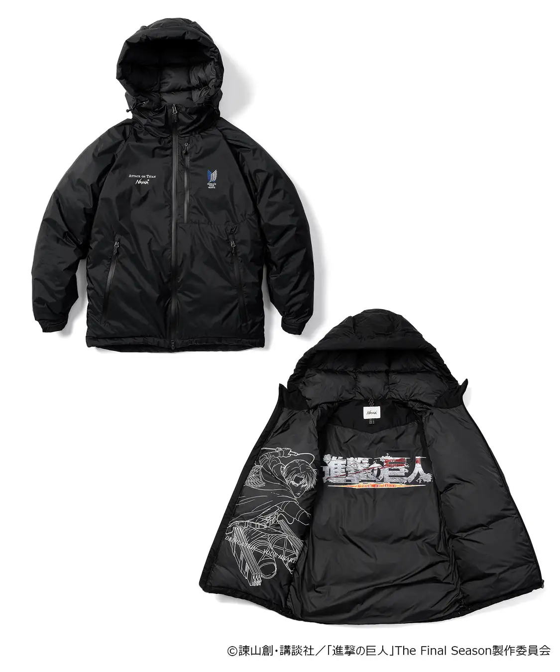 ▼ 進擊的巨人 × NANGA AURORA 羽絨外套(里維款,共兩色可選) 售價 : 69,300 日圓