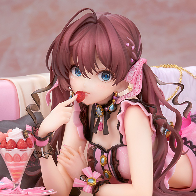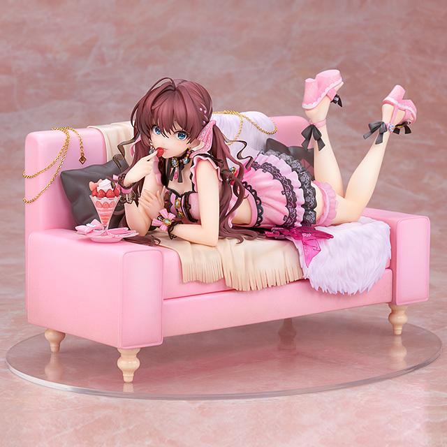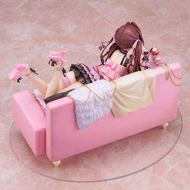 ALTER 推出的「一之瀨志希 Dolce Puella Ver.」基於遊戲中的角色插畫製作,以全長 22 公分尺寸將一之瀨志希本體連同沙發場景立體化。在本體部分忠實還原一之瀨志希俯臥在沙發上的慵懶姿態,並細膩雕塑出晃動那雙小腳的 S 形身材曲線。粉紅色調的可愛服裝運用多樣材質、色彩塗裝徹底還原細節,細膩表現各部珠寶、金屬飾品、黑色蕾絲邊的刺繡、髮帶上的圖樣...等豐富細節,完全重現這套服裝的魅力。