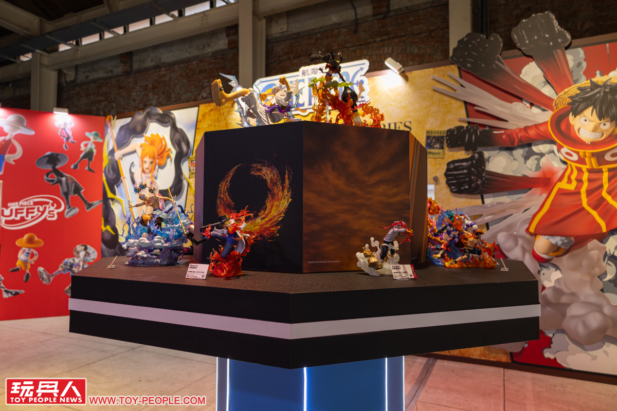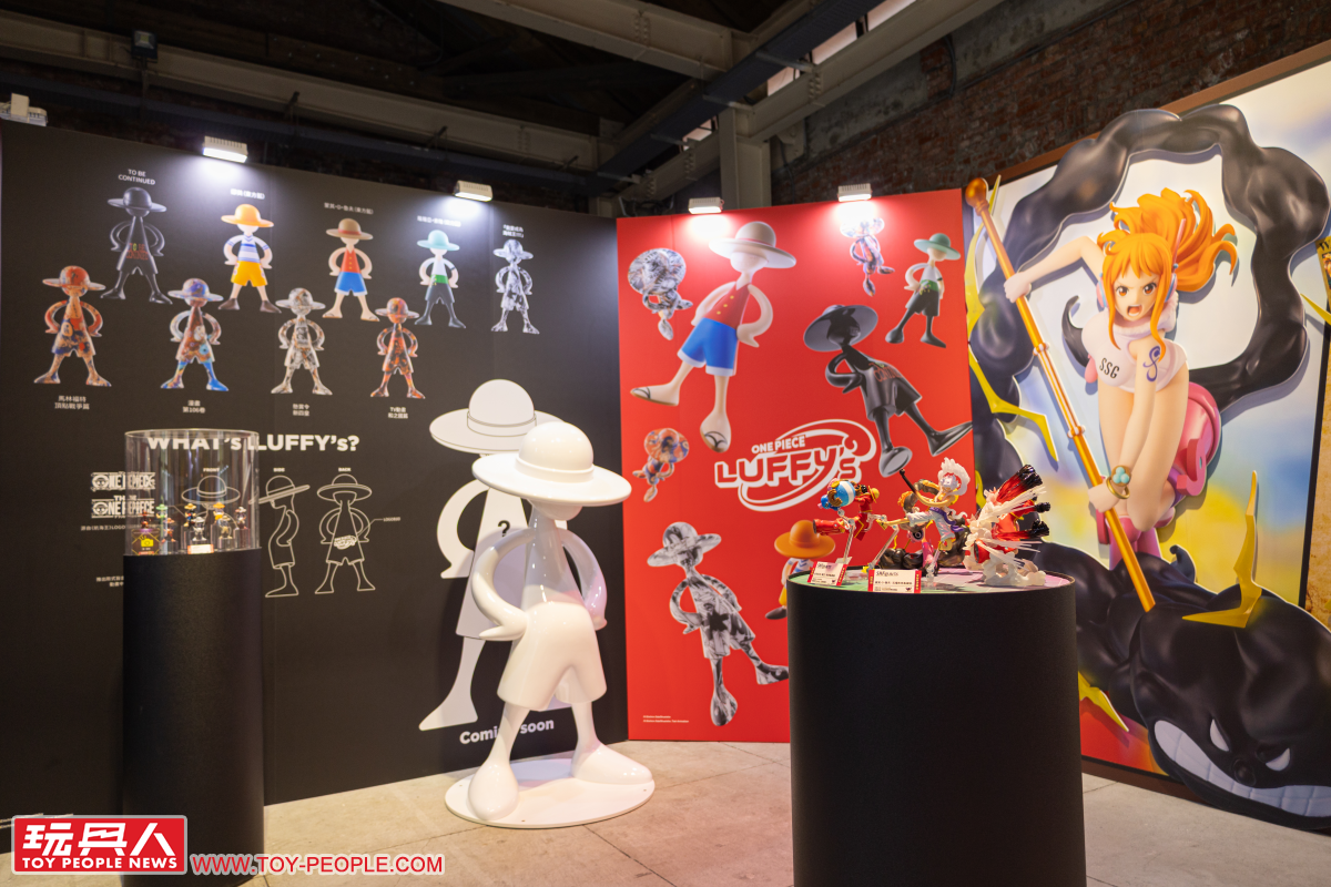 本次堪稱模型大慶典的玩具盛事是以《航海王》《七龍珠》《火影忍者》《鬼滅之刃》等人氣作品分區,也有近期大熱的《膽大黨》《機動戰士Gundam GQuuuuuuX》最新作展示,而且還有雙會場同步進行!整體真的相當精彩。我們先從位於華山西1館的第一會場開始吧~進到會場直面而來就是潮流感十足、《航海王》主題的盲抽盒玩「Luffy’s 冒險的記憶」第一彈,整面牆的視覺、白色巨大立像、實體玩具,展示搭配起來超帥啊!