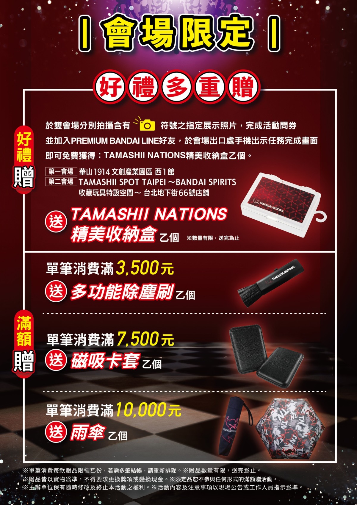 最後,當然也不能錯過到現場看展可以享受到的好康啦!包含雙會場的拍照活動跟消費滿額贈,在端午連假期間前來看展的玩具人千萬別錯過囉。