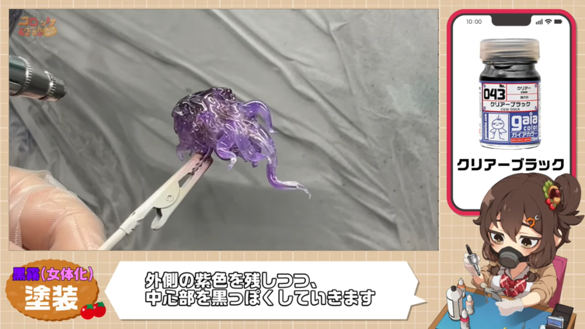 接著是上色,可以看到採用透明樹脂的黑霧,透過紫色與黑色的噴槍上色後,呈現出的效果非常出色。