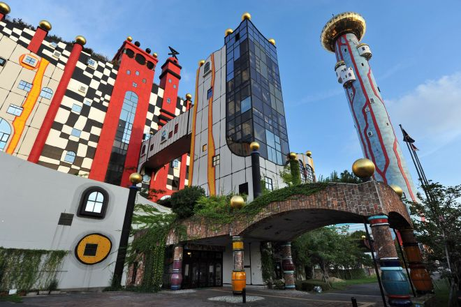 這名稱叫作「舞洲工場」的垃圾場,位於大阪舞洲的人工島上,設計它的人是宮崎駿非常欣賞的奧地利畫家、雕塑家 Friedensreich Hundertwasse ,他是奧地利最為古怪的藝術家之一。當初其實是為了申請 2008 年冬季奧運舉辦權才特別建設的,也難怪整個風格像藝術館或童話世界。