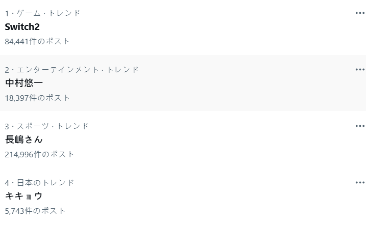 ▼ 看看到中村悠一的名字居然在 X 趨勢熱搜排行第二僅次 Switch2,就知道大家很關心他 www。