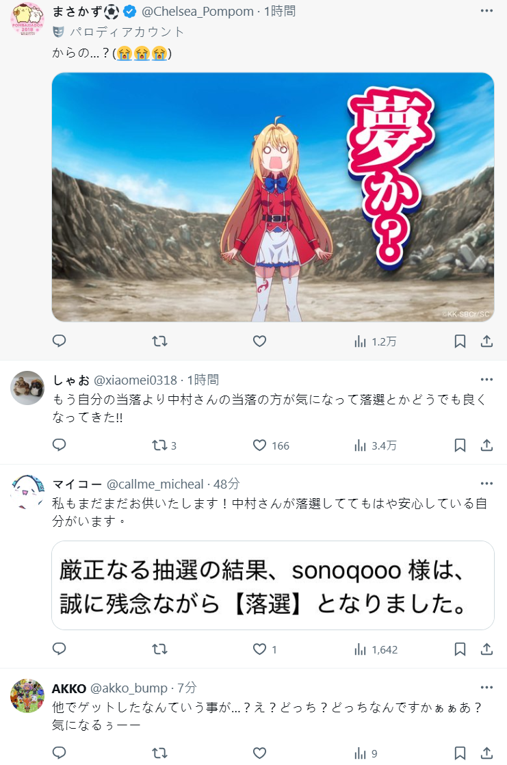 結果也出爐了,中村悠一 Po 文表示這次第三次落選了,也貼出落選通知截圖,淡淡地說:「雖然是這樣沒錯啦,但、真的這樣嗎?」,完全可以感受到他強大的無力感...。