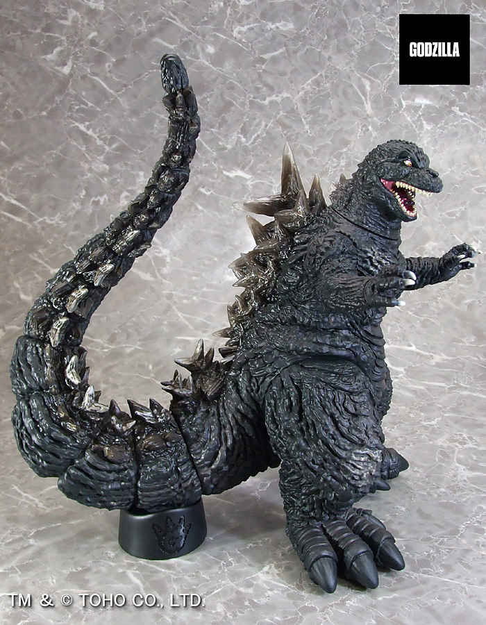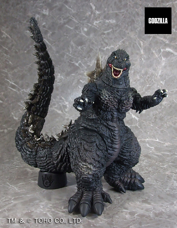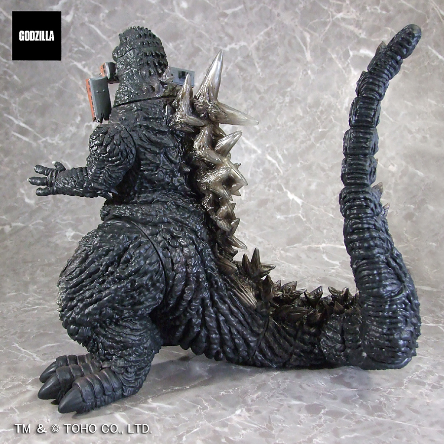 G-SAURUS系列的首作-哥吉拉(2023),以全新塗裝和新規頭部強勢回歸,咬著火車登場!本次的「哥吉拉(2023)電車咬擊Ver.」,背鰭利用透明材質的透明度和精緻漸層塗裝的棕色配色,展現哥吉拉在瓦礫和塵土中穿梭的姿態。頭部則是改變了視線與角度,重現怒目而視並咬著火車的場景;口中的火車可拆卸,無論在齒印、懸空的鐵桿等細節皆仔細刻劃。卸下火車的狀態使用附帶的尾部底座,可以賞玩充滿攻擊性的前傾姿勢!