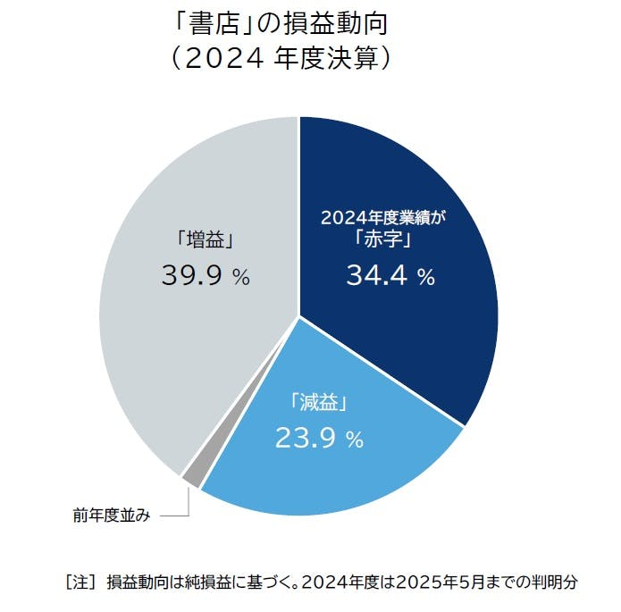 雖然如此,2024 年度的書店財務數據顯示,仍有 34.4% 的書店處於虧損狀態,將虧損和業績下滑加總起來,總共高達 58.3%,接近六成。疫情期間像是《鬼滅之刃》這類強檔作品所帶來的特需也逐漸難以期待,在以雜誌與漫畫為主力商品的現況下,書店的經營依舊吃緊。