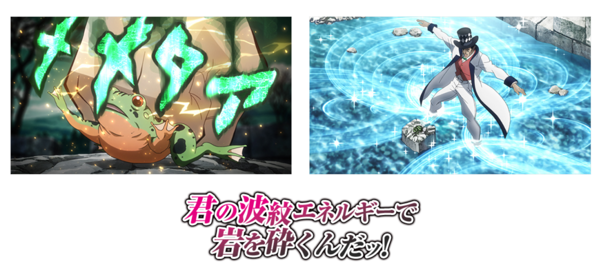這是個抽獎遊戲,靈感來自名場面:齊貝利在岩石上的青蛙身上施展波紋,打出經典音效「梅梅搭」那一幕!還能拿到以這個場景為主題的限定小物!