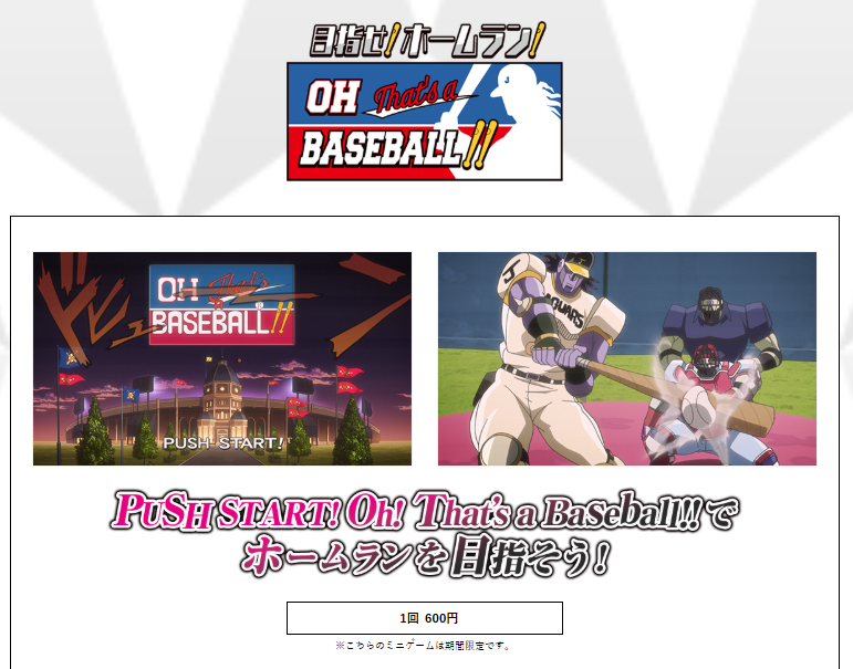 這是承太郎和泰倫斯 T.達比對戰時,玩過的那款虛擬棒球遊戲《Oh! That’s a baseball!!》為主題的抽獎遊戲,抽中就能帶走限定周邊!