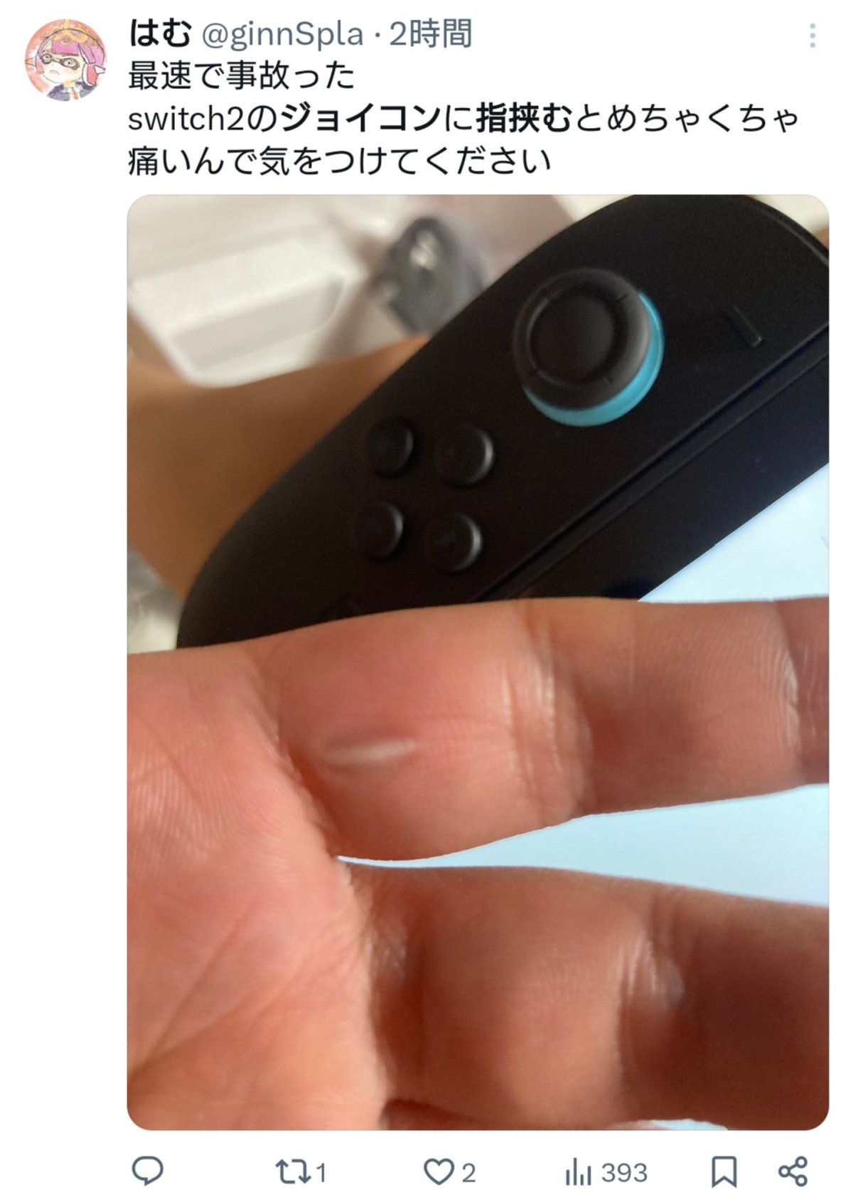 2025 年 6 月 5 日甫上市的任天堂新主機 Nintendo Switch 2,因一名男性實況主在裝上 Joy-Con 控制器時手指被夾傷而成為網路熱議焦點。該事件不僅掀起討論,更引發使用安全上的疑慮,隨後更有其他玩家紛紛貼出照片與心得,指出 Nintendo Switch 2 的磁吸設計潛藏危險。