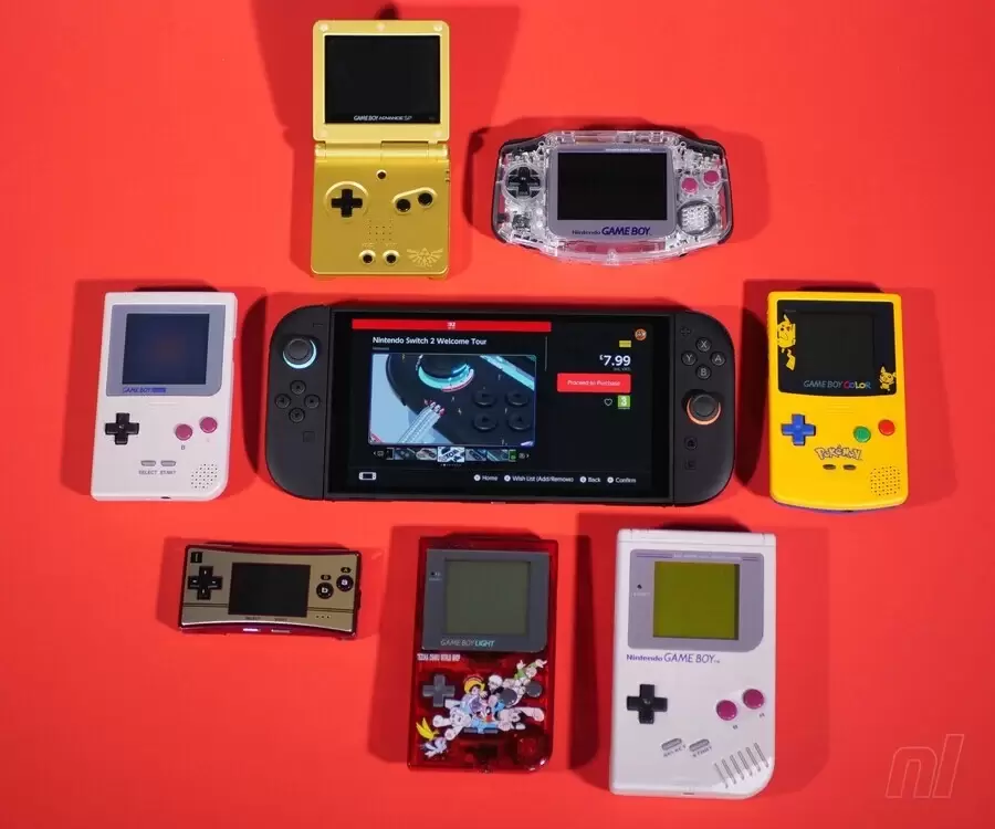 ▼Nintendo Switch 2 和任天堂 Game Boy 家族主機的尺寸比較