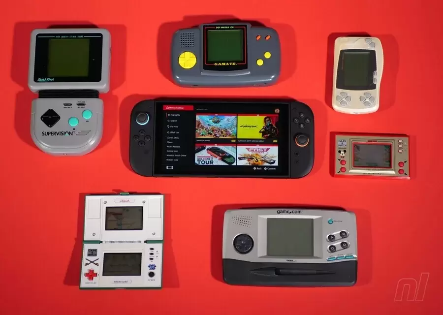 ▼從左上開始:Supervision、Gamate、WonderSwan、Game & Watch 寬螢幕版、Game.com,以及 Game & Watch 雙螢幕版本
