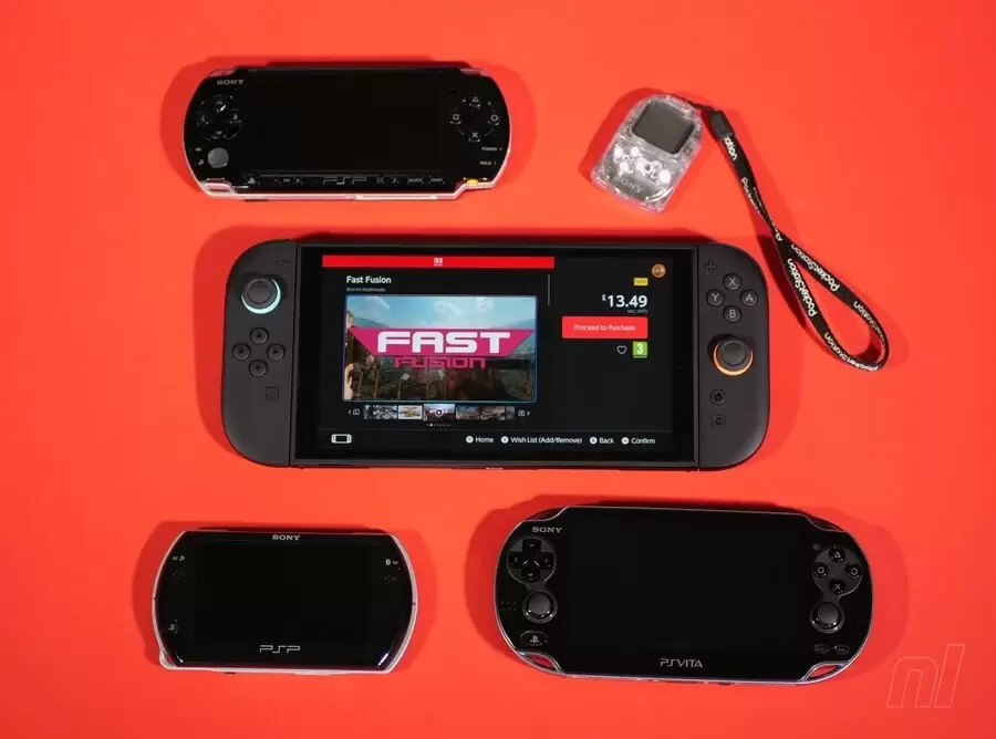 ▼Switch 2 與 Sony 的 PSP、PSP Go、PS Vita,以及 PocketStation 的比較