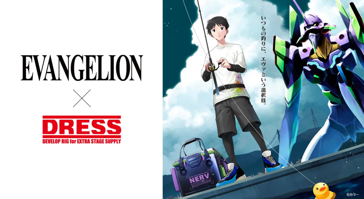 近日宣布與日本釣魚裝備品牌「DRESS」合作,推出一系列以各架 EVA 為主題的釣魚用具,主打「魚類捕獲計畫」,讓你連釣魚都可以充滿 EVA 魂!