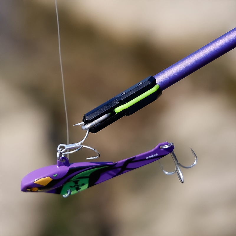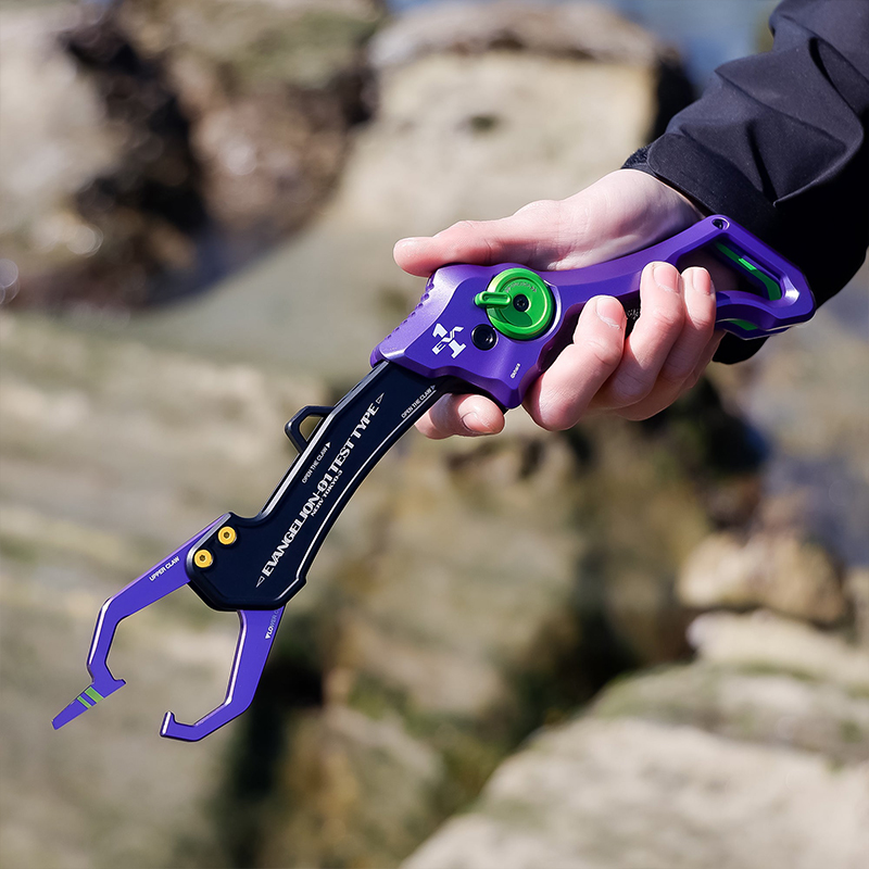握把部分採用符合人體工學的立體設計的輕量握把,易於握在手中,即使長時間操作也能舒適。此外,還配備了可以牢牢抓住閉合魚嘴的初號機造型爪子,專為釣鱸魚、藍魚和大型魚類的釣魚者而設計。