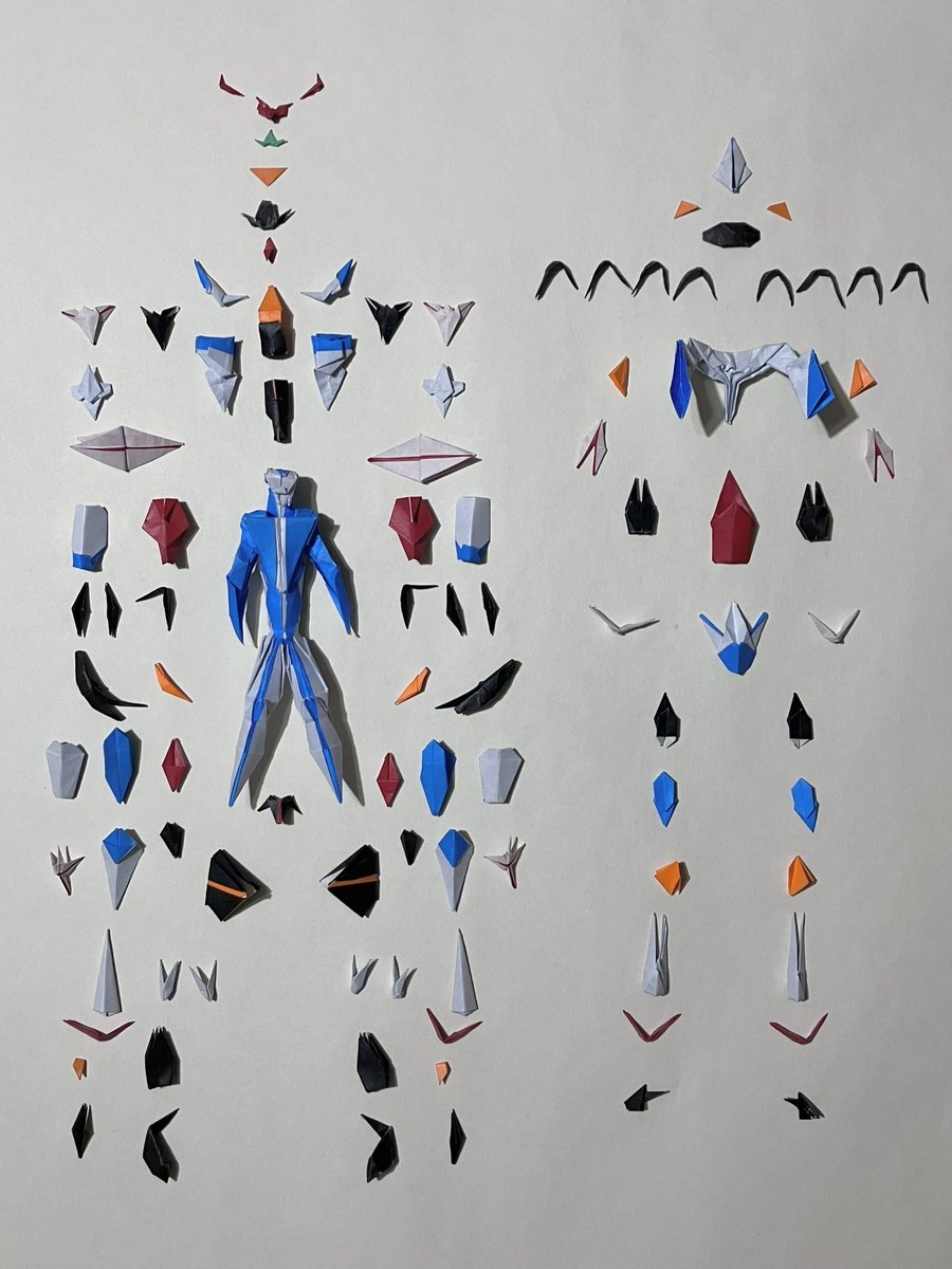 最讓人驚豔的是他補上一張製作中的照片,表示:「總共用了超過 400 個零件,全部都是紙張捏出來的。」,可以看到這精細度甚至不亞於鋼普拉的組件,讓不少網友看了直呼「太狂了吧!」