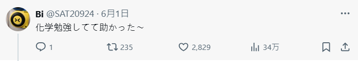接著他興奮表示:「有讀化學真的有差~幫了大忙。」