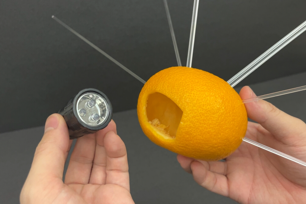 橘子的表面要留下空槽,以便放入這種最便宜的手電筒。
