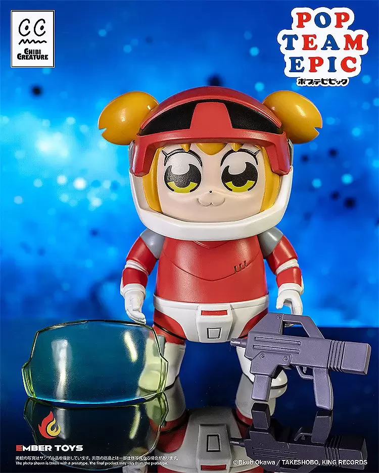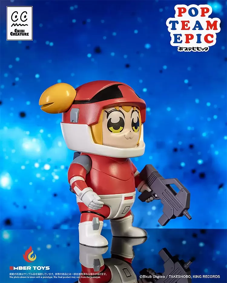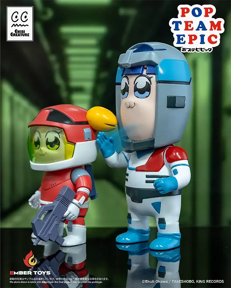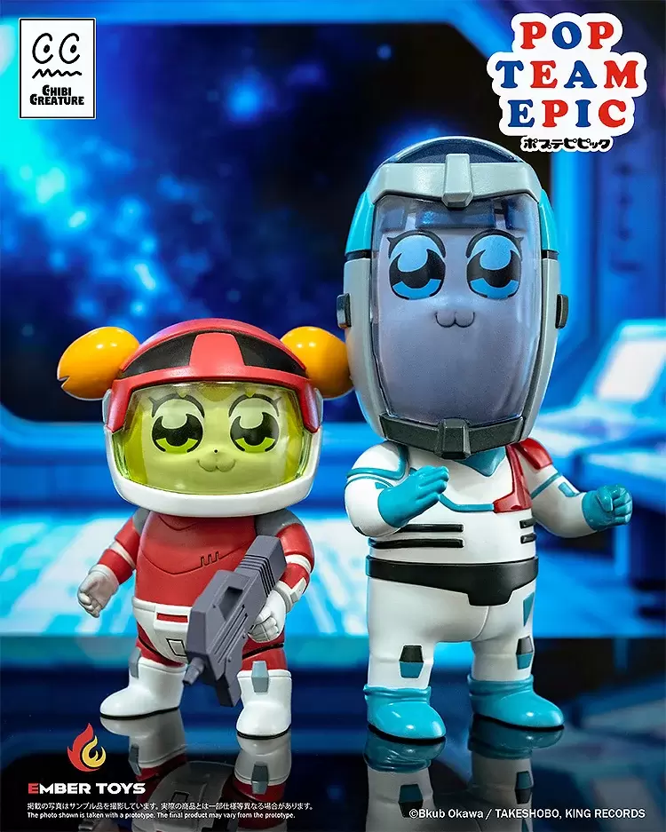 「Chibi Creature POP子&PIPI美 Spacesuit Ver.」軟膠模型,以第一季動畫中的太空服為基礎,並根據原作設定的比例打造,在POP子約 10 公分高、PIPI美約 15 公分高的尺寸中,生動地製作出兩位標誌性的大眼睛和看起來很跩的 W 嘴,採用精緻的軟膠成型技術及半光感塗裝,再現充滿個人風格的頭盔和太空服~面罩可拆卸,賞玩不同的造型。除此之外還附有POP子的衝鋒槍、PIPI美的手刀替換件,可以再現劇中「都說了別開槍!」的經典畫面!