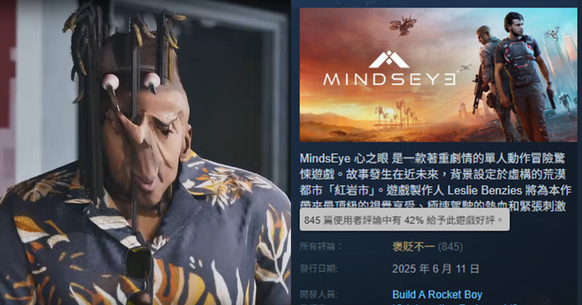 由前《俠盜獵車手》(Grand Theft Auto)資深製作人 Leslie Benzies 領導的愛丁堡工作室 Build a Rocket Boy,所推出的首款動作遊戲《MindsEye》,於 2025 年 6 月 11 日正式在 PC、PlayStation 5 及Xbox Series X/S 平台同步發售。然而,該作在 Steam 上的玩家評價卻陷入「多數負評」的尷尬局面,令玩家與業界頗為失望。