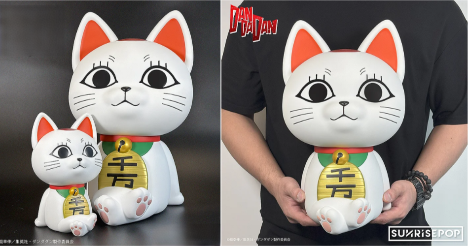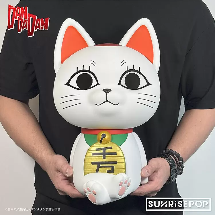 SUNRISEPOP「膽大黨 造型存錢筒-高速婆婆」,尺寸約高 18 公分,還原高速婆婆意識被轉移到招財貓後的造型,除了有點跩跩的臉之外,連動作都很囂張~雙腳交叉、高抬下巴的造型散發著高速婆婆的傲嬌氣息。胸前的「千万兩」金幣以及肉球等細節也如實再現,背後設計有投幣孔,用招財貓存錢讓人感覺會帶來好運!