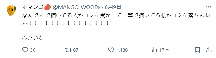 也有網友反舉例諷刺「為何那些用電腦繪圖的繪師居然能報上 Comiket 攤位,自己用筆手畫的卻落選」,當年也有這樣的抱怨聲,看起來也幾分類似。