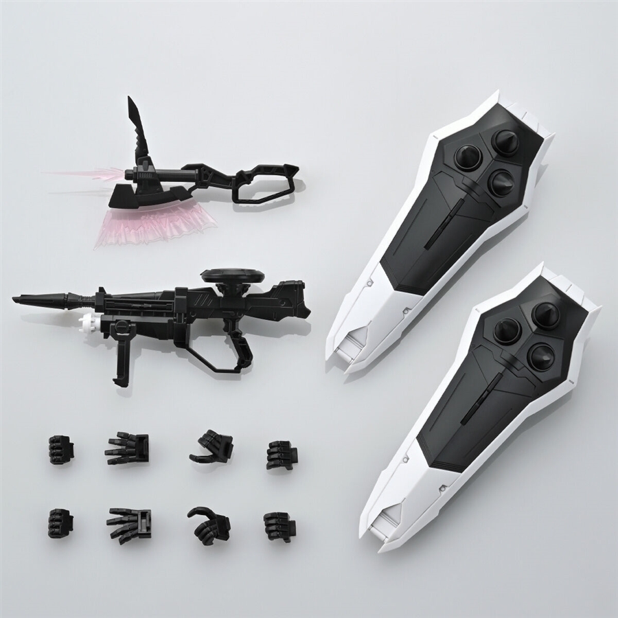 「MG 1/100 瞬發型薩克幽靈 (迪安卡・艾斯曼專用機)」基於過去推出的一般規格修改而來,運用新規成型色再現迪安卡專用機特徵的黑、灰色調塗裝。套件同樣採用較為簡化的「札夫特骨架」設計,雖沒有與過去 MG 商品同等的精密內構細節,但整體可動性依舊靈活,動力管部份採用球形關節連結,在腿部動作時同時連動。