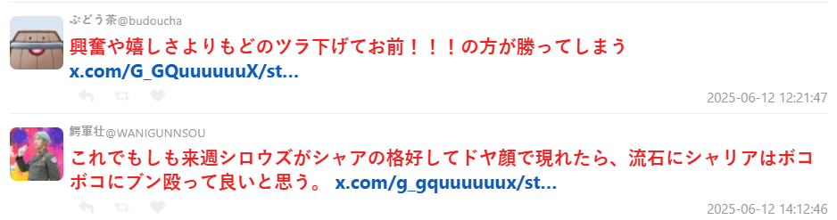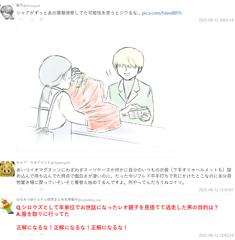 前日 ( 6/11 ) 深夜播出的第十話「封鎖伊歐瑪格奴索」劇情發展讓不少觀眾大為驚艷,十分期待後續發展的同時,官方在 X 追蹤人數 38 萬突破時發布一張圖請大家期待下週,這套熟悉到不行的「紅色制服」讓網友瞬間炸鍋,大批粉絲在 X 上用憤怒與搞笑交織的語言抒發各種情緒。
