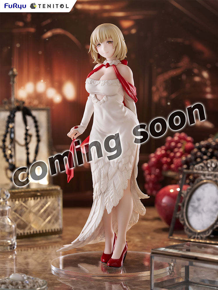 從目前公開的商品圖來看TENITOL TALL系列為兩人打造了身著禮服的原創造型,瑪露西爾高約28公分,整體以黑金色調打造,雕刻呈現出禮服輕盈的柔軟的皺摺,並以彩透材質製造出薄紗般的視覺效果,散發典雅的氣息;而法琳的禮服造型更加吸睛,高約30公分,使用了她變身奇美拉後的視覺元素,整體以潔白的羽毛為基礎設計,在高跟鞋以及絲巾部分採用紅色點綴還原火龍的腳的色彩,包不住的好身材更是一大看點,讓人超期待正式販售資訊的公開!