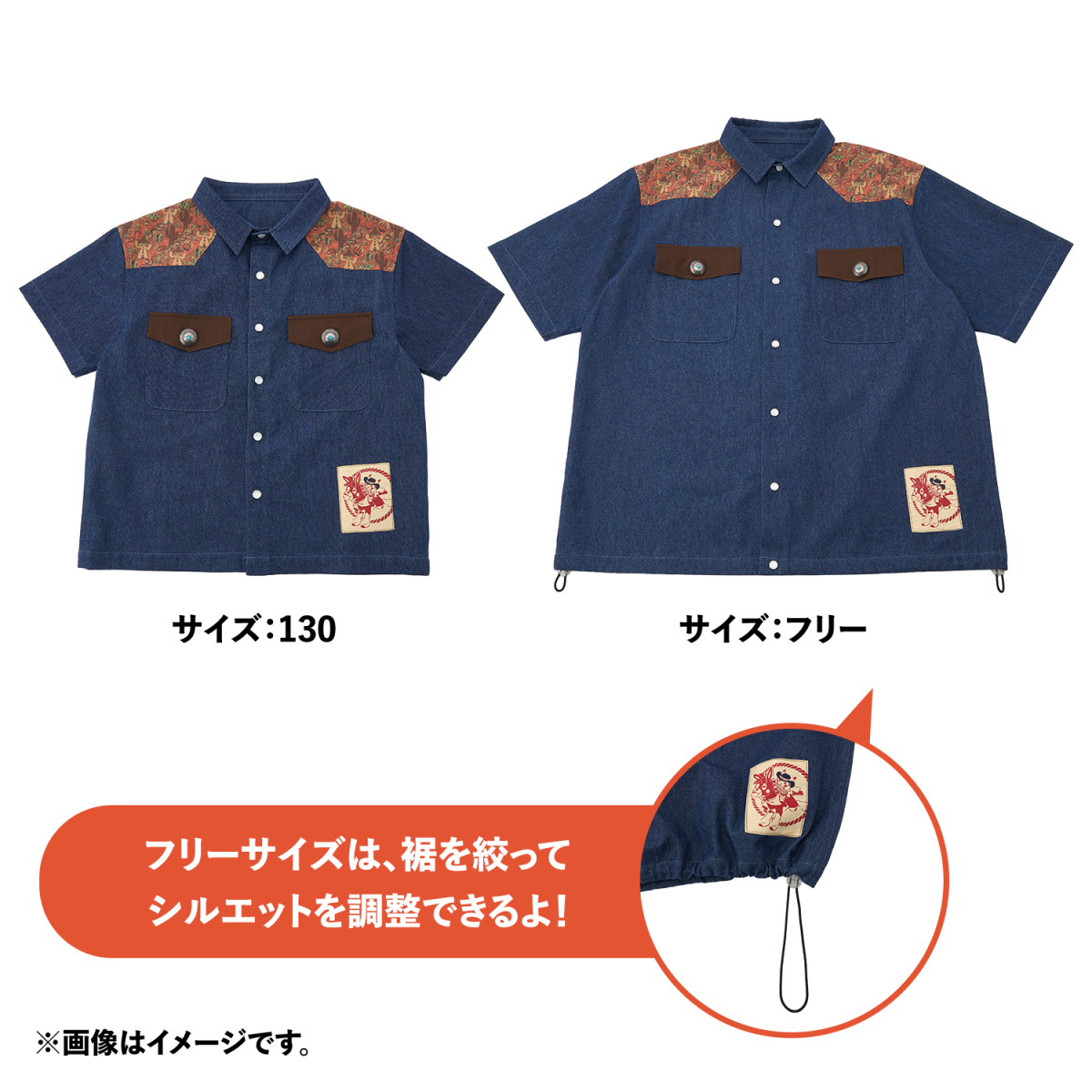 ▼ 西部風格丹寧短袖襯衫(成人Free size/孩童) 售價 : 7,700 & 6,600 日圓
