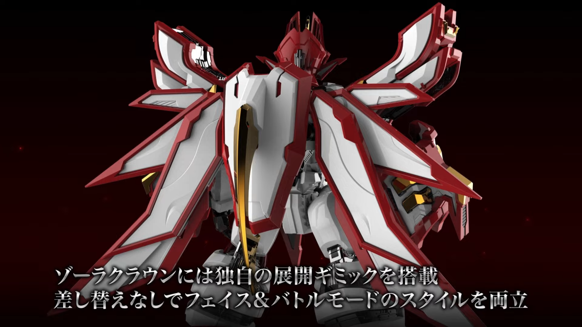 不同於 MODEROID 的塑膠組裝模型規格,「HAGANE WORKS King's Style 超級火王」是以極具重量感的合金可動模型呈現,具備高密度的細節刻畫,並運用透明、電鍍零件表現內部透出的機械構造、豪華的金黃色裝甲,雙眼更內藏了發光機構。此外背部的「佐拉皇冠」也採用模型原創的展開機構,無需替換零件就能完全變形「巨臉模式」、「戰鬥模式」!