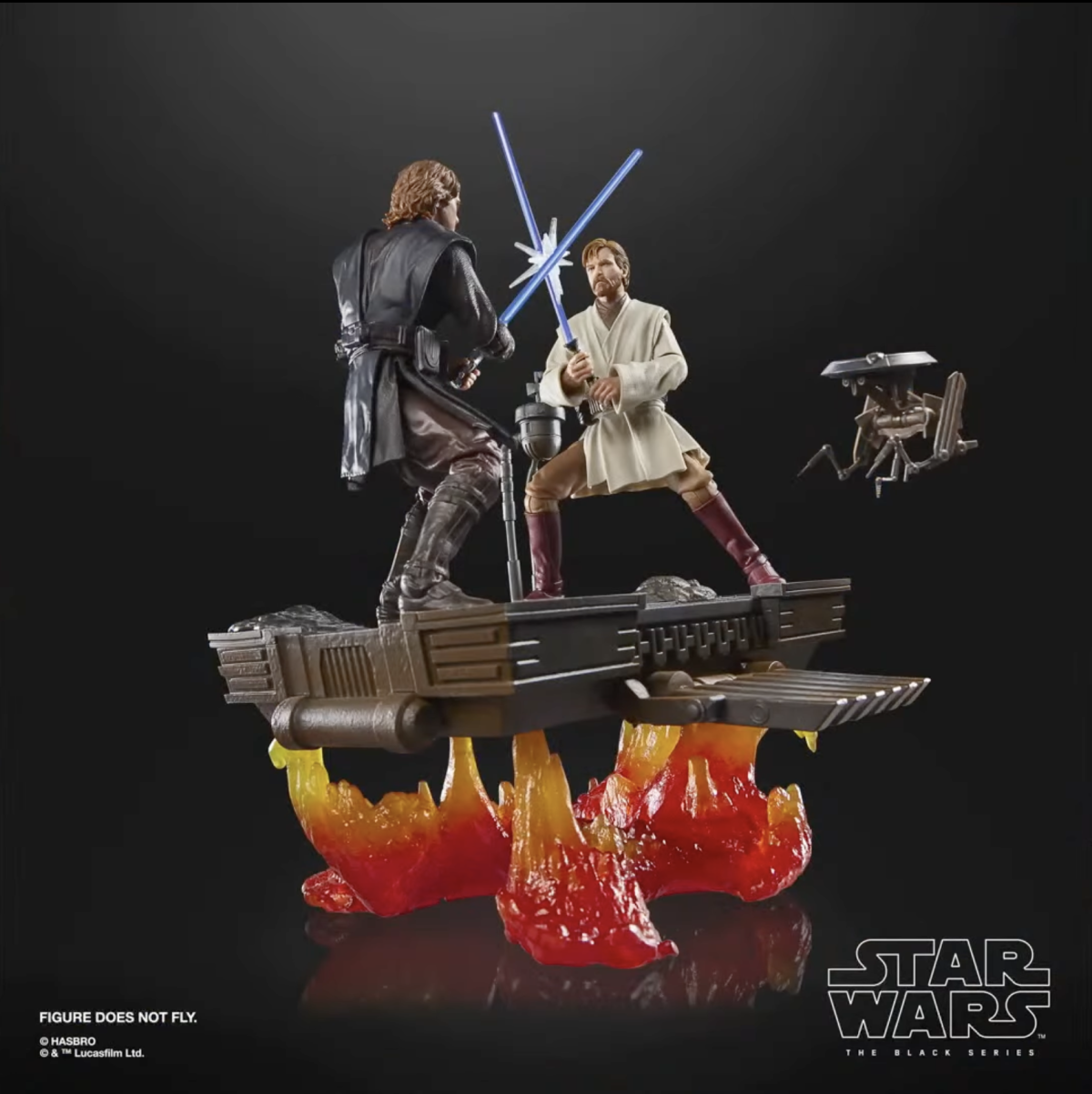 而這次的一大看點絕對是穆斯塔法星場景配件!以塑膠材質配合舊化塗裝還原兩人決鬥時歐比王踩著的漂浮平台以及安納金踩著的機器人,並在底部附有大份量的彩透火焰特效,重現對決熾熱的氛圍!