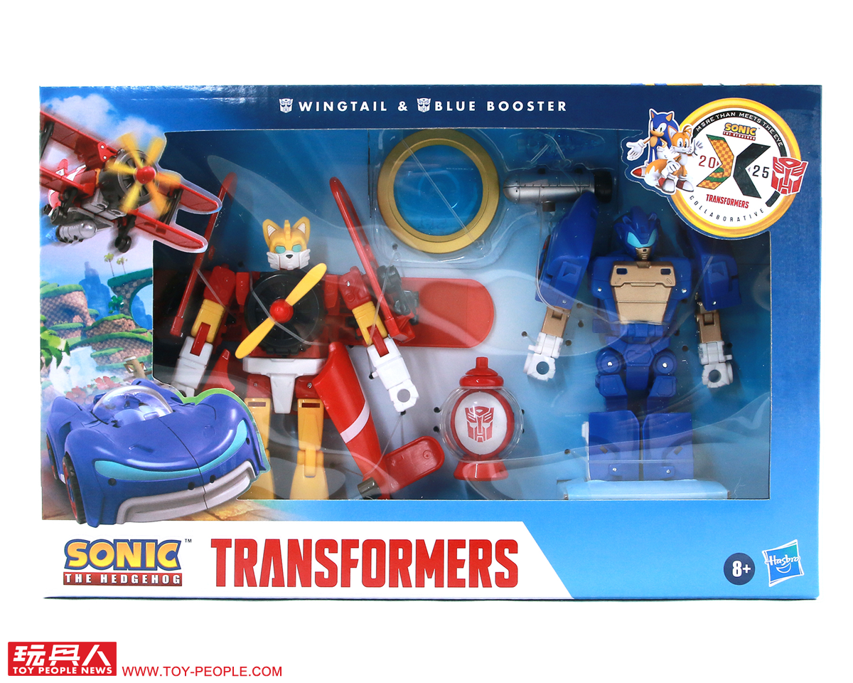 沒錯,你沒看錯!這一次的變形金剛聯名系列,正是與《音速小子》連動、推出了最新的雙人組合包,一口氣收錄了兩位博派金剛-擬態為藍色刺蝟「索尼克」(Sonic,舊譯作音速小子)和跑車的「藍色推進器」(Blue Booster),以及化身為雙尾狐狸「塔爾斯」(Tails,舊譯作小尾巴)和雙翼飛機的「翼尾」(Wingtail),可說是兼具了速度感與話題性的跨界組合,今天的開箱報告,就讓我們來一起體驗這兩個聯名款的超速度魅力吧!
